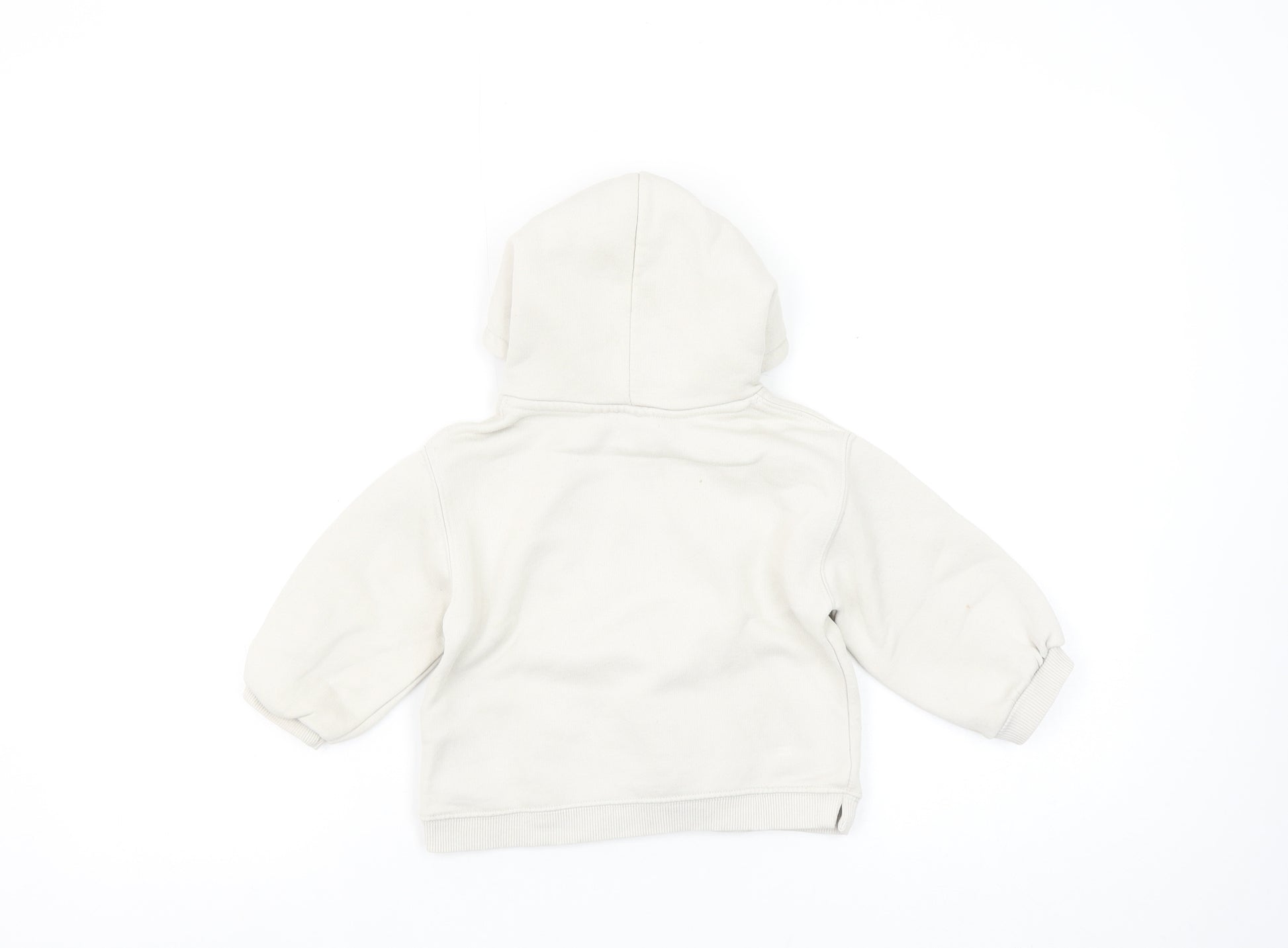 Add a playful touch to your little one’s wardrobe with this adorable ZARA Girls Beige Hoodie. Designed in a soft cotton blend fabric, this pullover-style hoodie ensures comfort and style in equal measure. The cheerful graphic of a teddy bear paired with the slogan 'Everyday is Funday' makes it a perfect pick for everyday adventures, nursery days, or relaxed weekends. The lightly lined interior provides extra warmth, making it ideal for cooler autumn and spring days, while the ribbed cuffs and hem offer a secure and comfortable fit. Crafted from 97% cotton, 3% elastane, and polyester detail accents, the hoodie is durable yet soft against delicate skin. Its regular fit allows easy layering over t-shirts or under jackets, making it a versatile piece for any season. This beige tone complements any outfit effortlessly, adding a fun and cosy vibe to your child’s collection. Though preloved, the hoodie remains in excellent condition with no stains, marks, or damage visible, showing only minimal signs of previous use. Style it with jeans, leggings, or joggers for a casual but adorable everyday outfit. Machine washable for easy care and convenience. A delightful piece that blends comfort, practicality, and charm – this ZARA teddy-themed hoodie is sure to become a favourite for all-day fun and play.