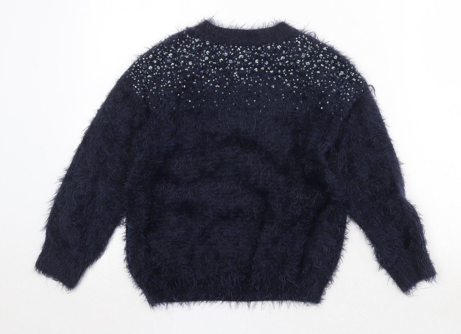 Girls Blue Crew Neck Nylon Pullover Jumper Size 9 Years Pullover - Fluffy