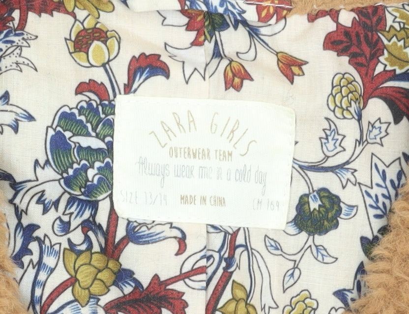 Wrap your little one in timeless comfort with this Zara Girls faux fur waistcoat, perfect for chilly autumn and winter days. Crafted from soft and cozy brown polyester fleece, this piece combines comfort with effortless style. The luxurious faux fur outer shell provides a plush, tactile finish, while the beautifully patterned cotton lining adds a delightful contrast and touch of personality. Designed for ages 13–14 years, it offers a Regular fit and easy-to-wear shape, making it ideal for layering over jumpers or long-sleeve tops on cooler days.The waistcoat fastens neatly at the front with a practical hook and eye closure, ensuring a secure and stylish fit. Featuring a Mid-Length design and sleeveless cut, it delivers both warmth and flexibility, ideal for active girls who love to move freely. The understated brown shade complements a variety of outfits—from jeans and boots to dresses and tights—making it a versatile staple for casual wear or everyday outings. Fully lined for extra comfort, this waistcoat offers dependable softness and insulation without bulk, perfect for layering through transitional seasons.This item remains in Excellent pre-owned condition, showing minimal signs of prior use and no visible damage. Though it does not include its original tag, the quality and comfort expected from Zara’s Outerwear Team remain evident. Machine washable for easy care, it’s a practical yet fashionable addition to any girl’s seasonal wardrobe. The faux fur finish and classic cut ensure it stays stylish year after year, while the floral inner lining adds a pop of charm.A great choice for everyday wear, walks to school, or weekend adventures, this Zara Girls brown waistcoat provides a cozy, chic look that balances warmth, durability, and charm. A delightful pick for any modern young trendsetter ready to face the colder months in comfort and style.