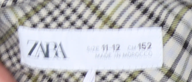 This chic Zara skirt is a stylish addition to any young girl's wardrobe. The multicoloured check pattern adds a distinctive flair, perfect for casual occasions. With a pleated style, it offers a classic look that's always in fashion. Crafted from a luxurious blend of cotton, viscose, and elastane, it provides a comfortable fit and feel. The button closure ensures easy wear while adding a touch of elegance. Designed for girls aged 11-12 years, this skirt is both practical and fashionable, making it ideal for day-to-day wear. With no visible stains or rips, it's in excellent condition, though lacks original sales tags. It's a versatile piece that pairs well with a variety of tops for a complete, stylish outfit.