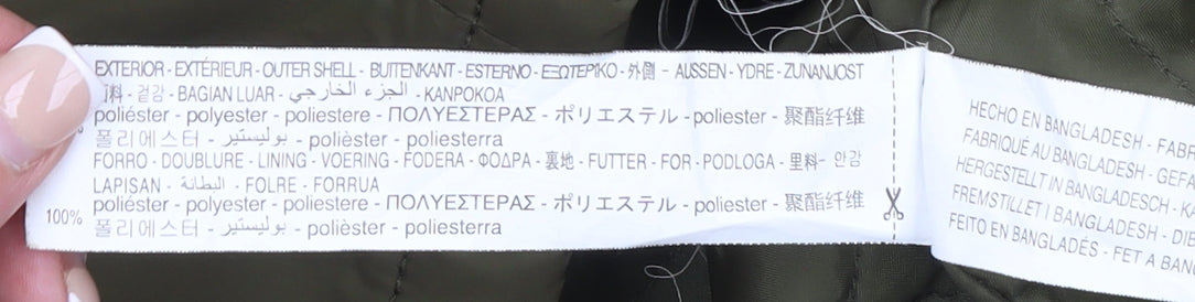 Keep your youngster cosy and stylish with this Zara girls’ green padded basic jacket, designed to deliver both practicality and charm throughout chilly seasons. Crafted entirely from durable polyester, the outer shell provides lightweight comfort with a sleek, smooth finish, while the 100% polyester lining ensures a comfortable insulated feel against the skin. Its mid-length cut offers excellent coverage ideal for Autumn and Winter wear, making it a versatile layering piece for school days, outings, and family adventures. The jacket features front press-stud closures that make dressing effortless, while the two generously sized flap pockets add a touch of utility and provide practical space for essentials. The structured collar delivers a neat finish, and the long sleeves come with adjustable cuffs for added comfort. The olive green hue ensures an earthy and stylish appeal that pairs easily with denim, leggings, or casual trousers. Despite minor cosmetic marks on the front, the jacket retains its excellent overall shape and durability. Designed for regular fit and long-lasting wear, it balances fashion with function, ensuring your child stays warm without added bulk. This Zara outerwear piece embodies everyday utility reimagined with premium appeal, making it a dependable choice for unpredictable British weather. Ideal for layering over jumpers or hoodies, it transitions easily from playground fun to weekend family strolls. Zara’s attention to detail and contemporary tone ensure that even the simplest cold-weather outerwear looks effortlessly chic. A perfect addition to your growing wardrobe collection, combining comfort, practicality, and style in one dependable piece.