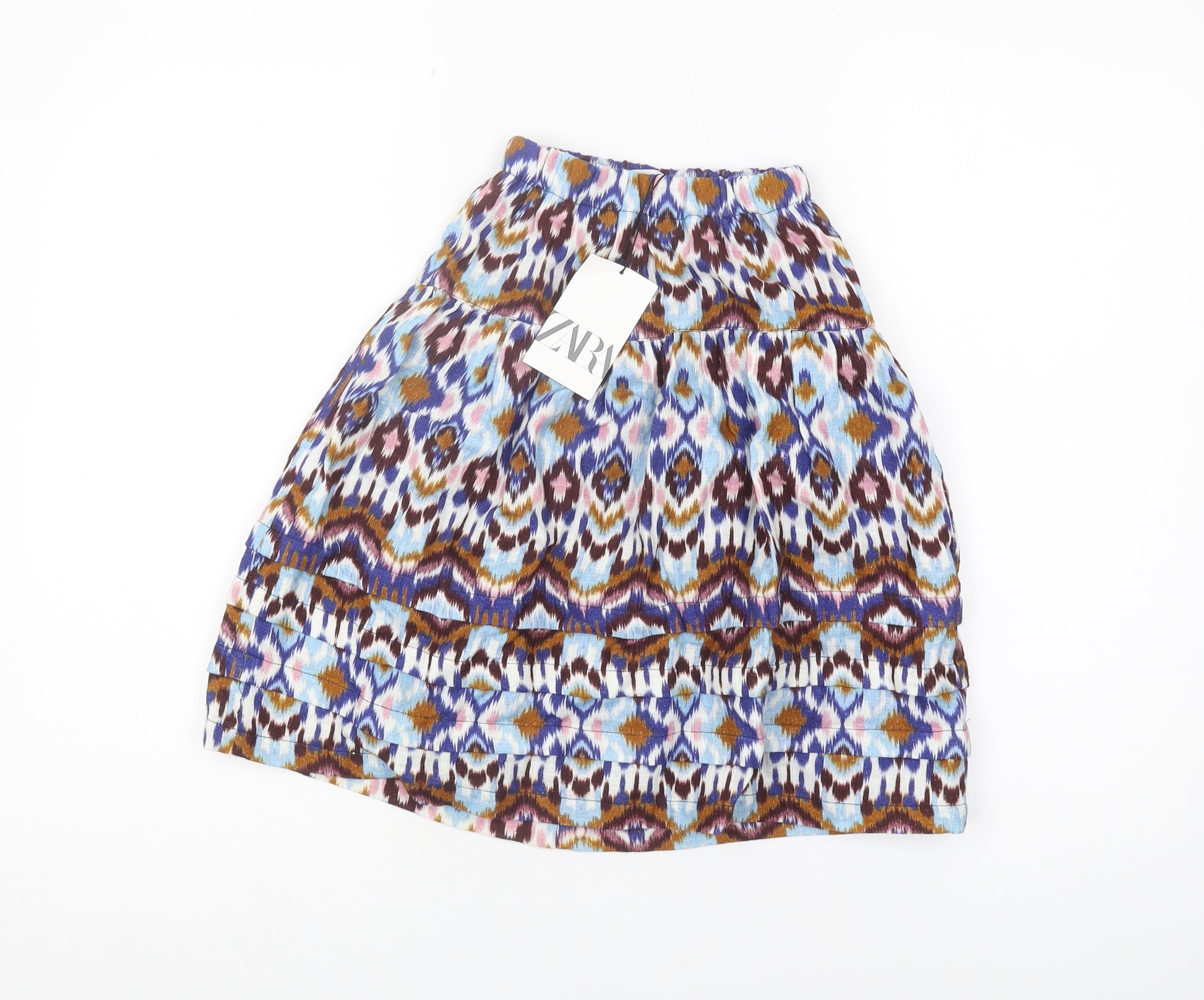 Add an effortless touch of charm to your little one's wardrobe with this beautiful Zara skirt. Crafted from 100% cotton, this skirt is not only soft and breathable but also stylish with its vibrant multicoloured ikat pattern. Made for the fashion-forward young girl, this skirt is perfect for a variety of occasions, from casual outings to more festive gatherings. Its versatile multicoloured design allows it to be paired with a variety of tops and shoes, making it an essential piece for every season. The lively and unique ikat pattern offers a playful yet sophisticated look, ensuring your child stands out in style. Featuring a comfortable fit, the skirt promises a fuss-free wearing experience. Brand new with tags, this delightful skirt also makes a perfect gift for fashion enthusiasts wanting to expand their collection. Don’t miss out on this chic addition to a girl’s wardrobe—a stylish blend of comfort and fashion from Zara.