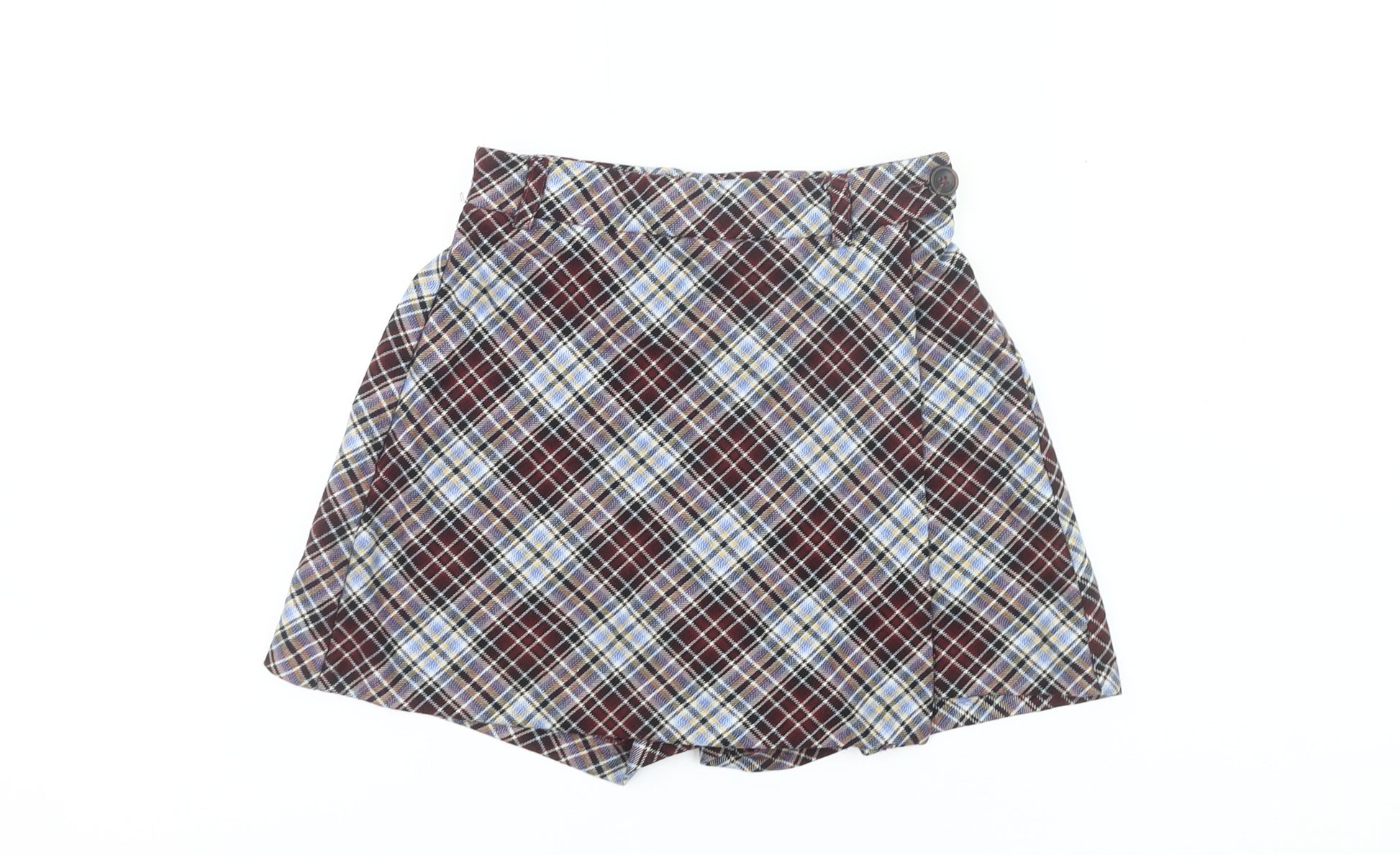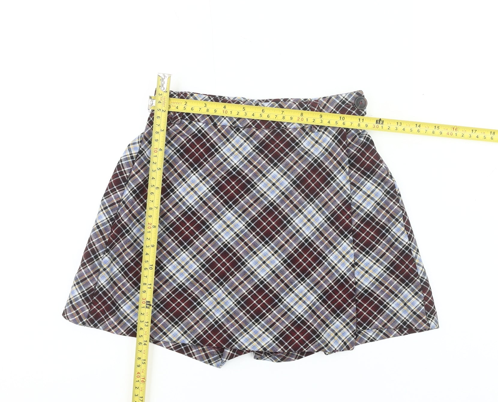 Girls Multicoloured Plaid Pleated Skort 11-12 Years School Casual