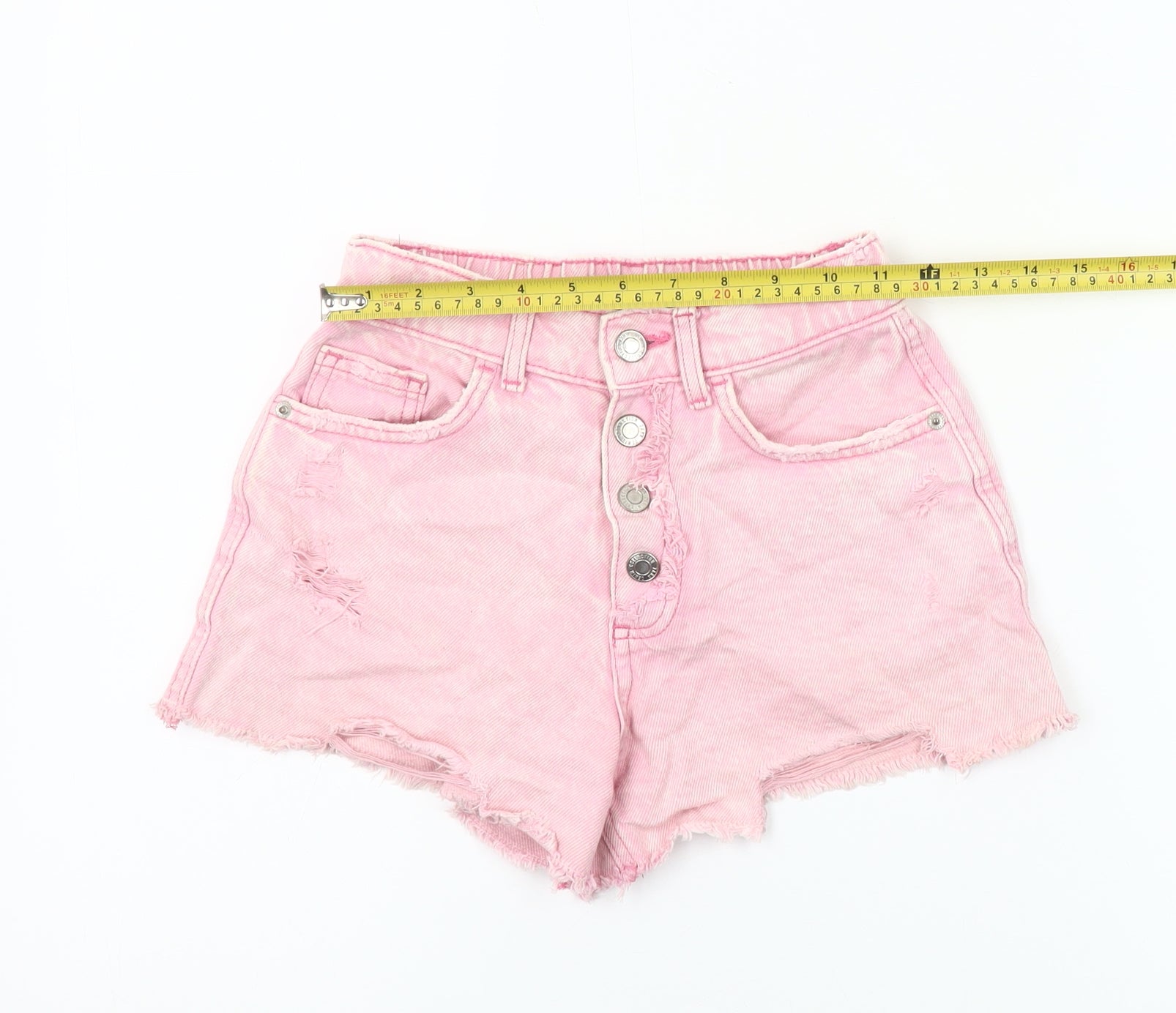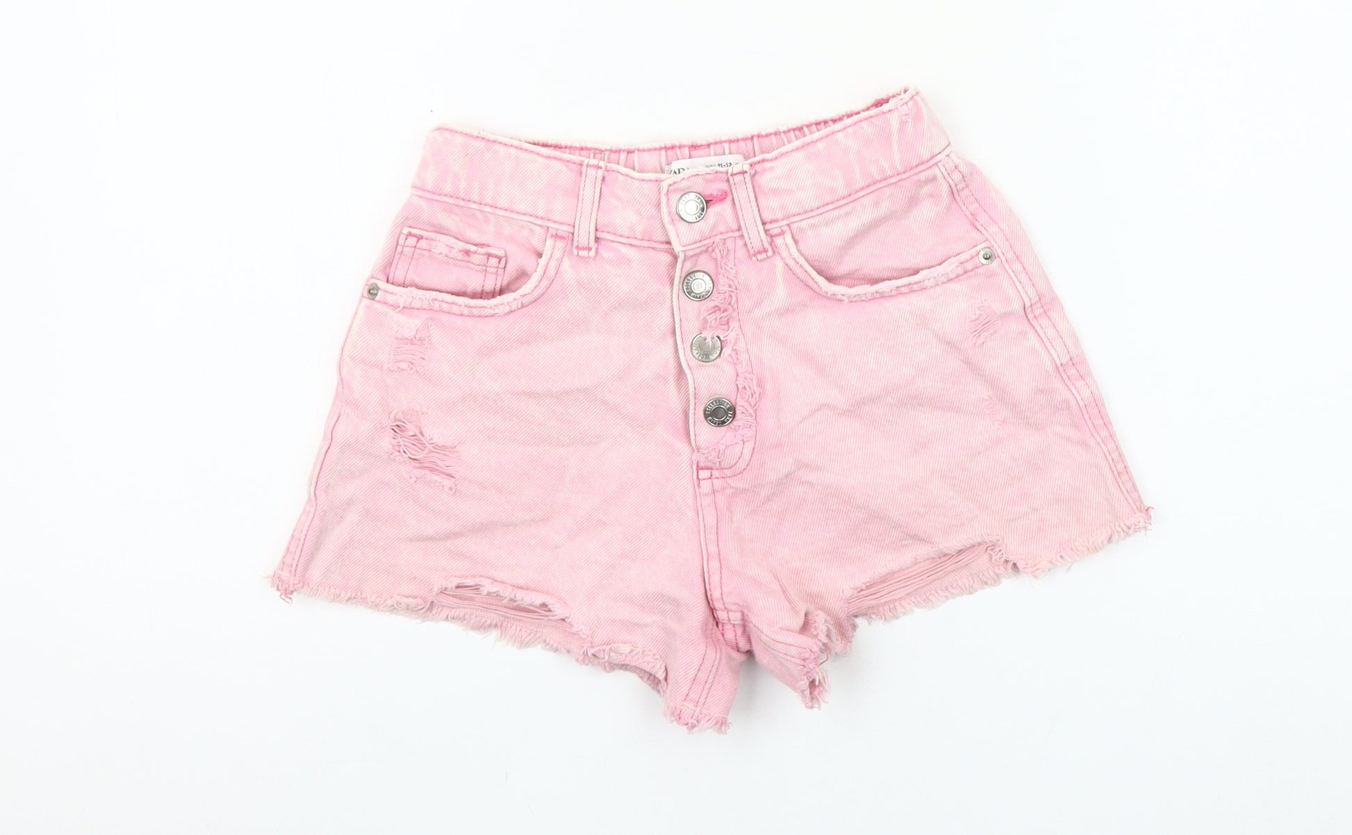 Girls Pink Cut-Off Denim Shorts Size 11-12 Years Distressed Summer