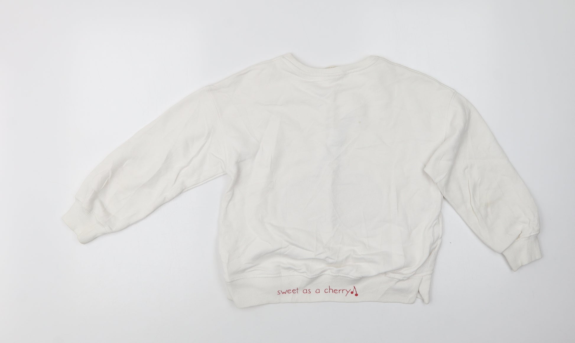 Girls White Cotton Pullover Sweatshirt Size 9 Years - Cherry