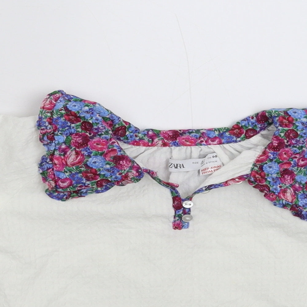 Girls White Floral Basic Button-Up Size 2-3 Years
