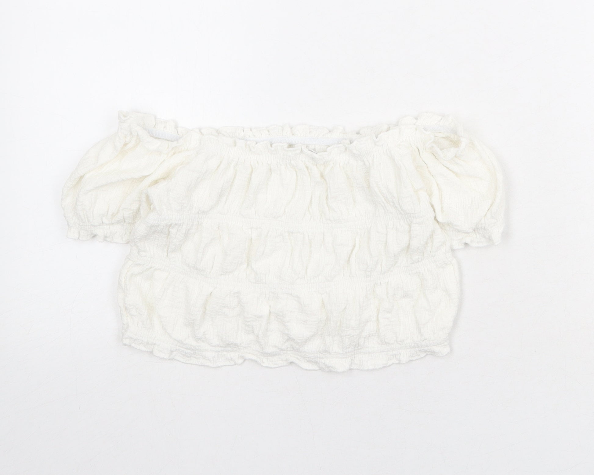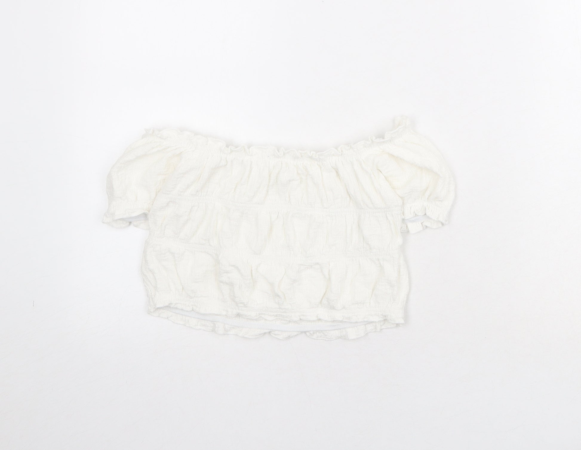 Girls White Polyester Cropped Blouse Size 9-10 Years Off the Shoulder Pullover