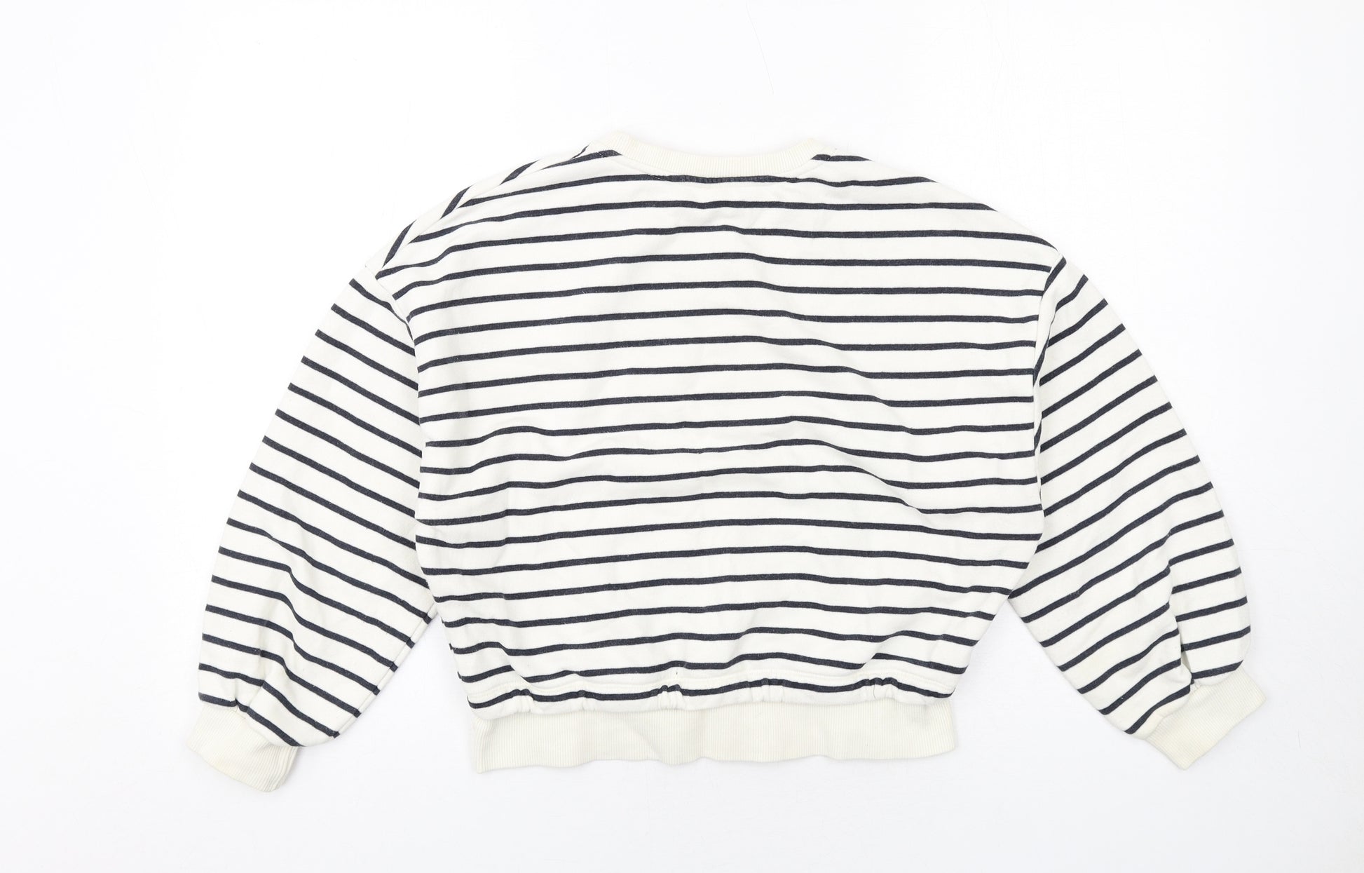 Girls White Striped Cotton Pullover Sweatshirt Size 11-12 Years Pullover