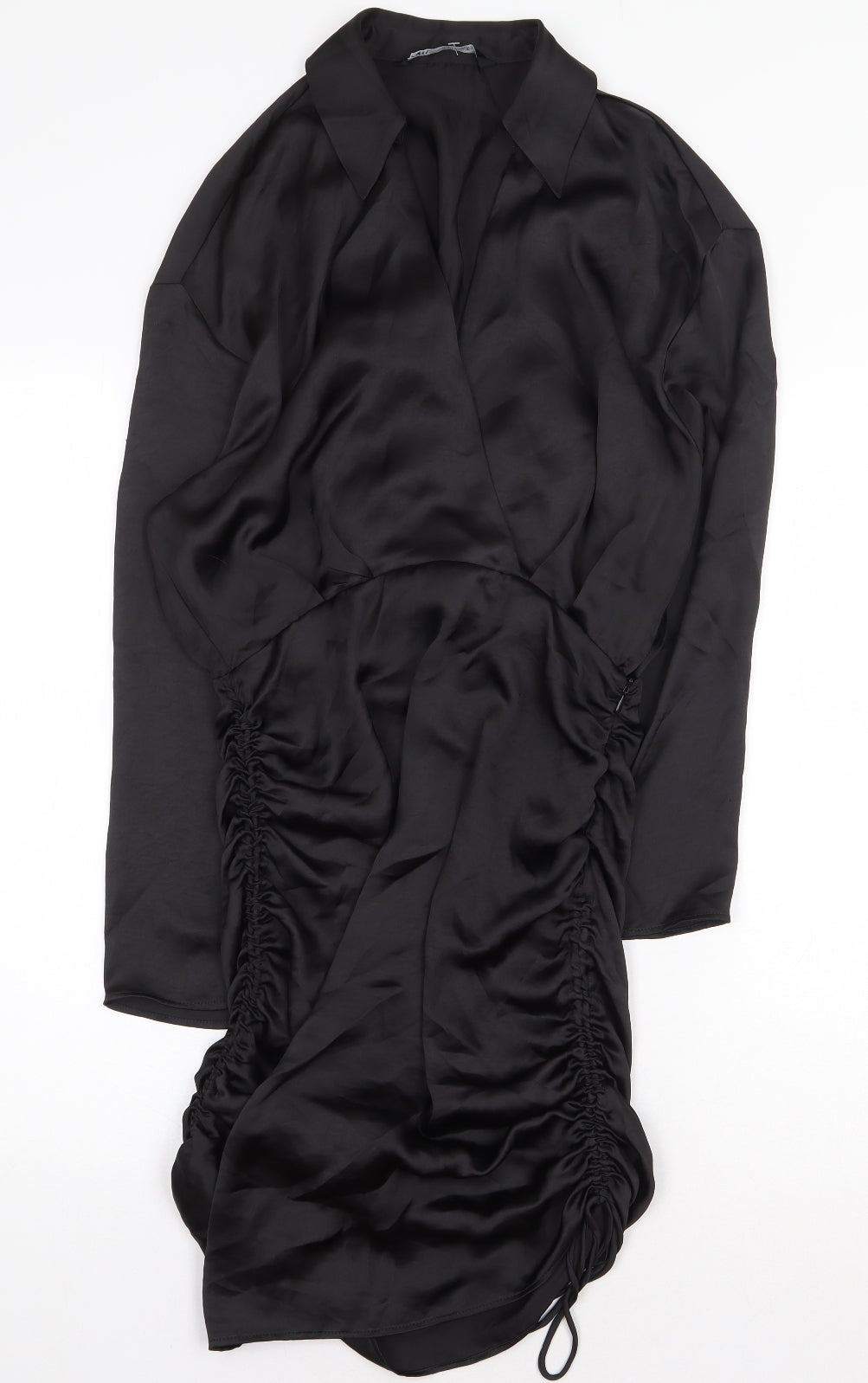 Womens Black Polyester Shirt Dress Size S Collared Zip