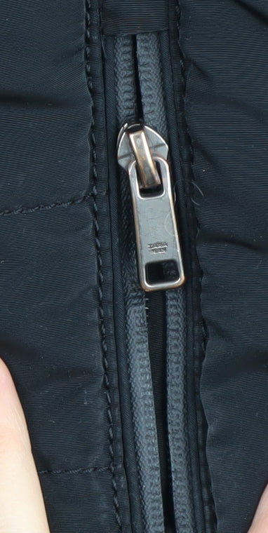 This Zara Man jacket is the perfect blend of style and comfort, ideal for casual autumn and winter outings. Crafted from high-quality polyester, it offers durability and a sleek appearance in versatile black. The jacket features a full zip closure and side zipped pockets adding functionality while maintaining a minimalist design. Its regular fit and mid-length make it suitable for layering over your favourite outfits, whether you're heading to work or on a relaxed weekend trip. The band collar style adds a subtle modern touch, and the jacket is machine washable for practical care. Despite light wear, the jacket maintains its excellent condition, with no visible damage. Elevate your casual wardrobe with this essential outerwear piece from Zara Man, known for quality and contemporary style.