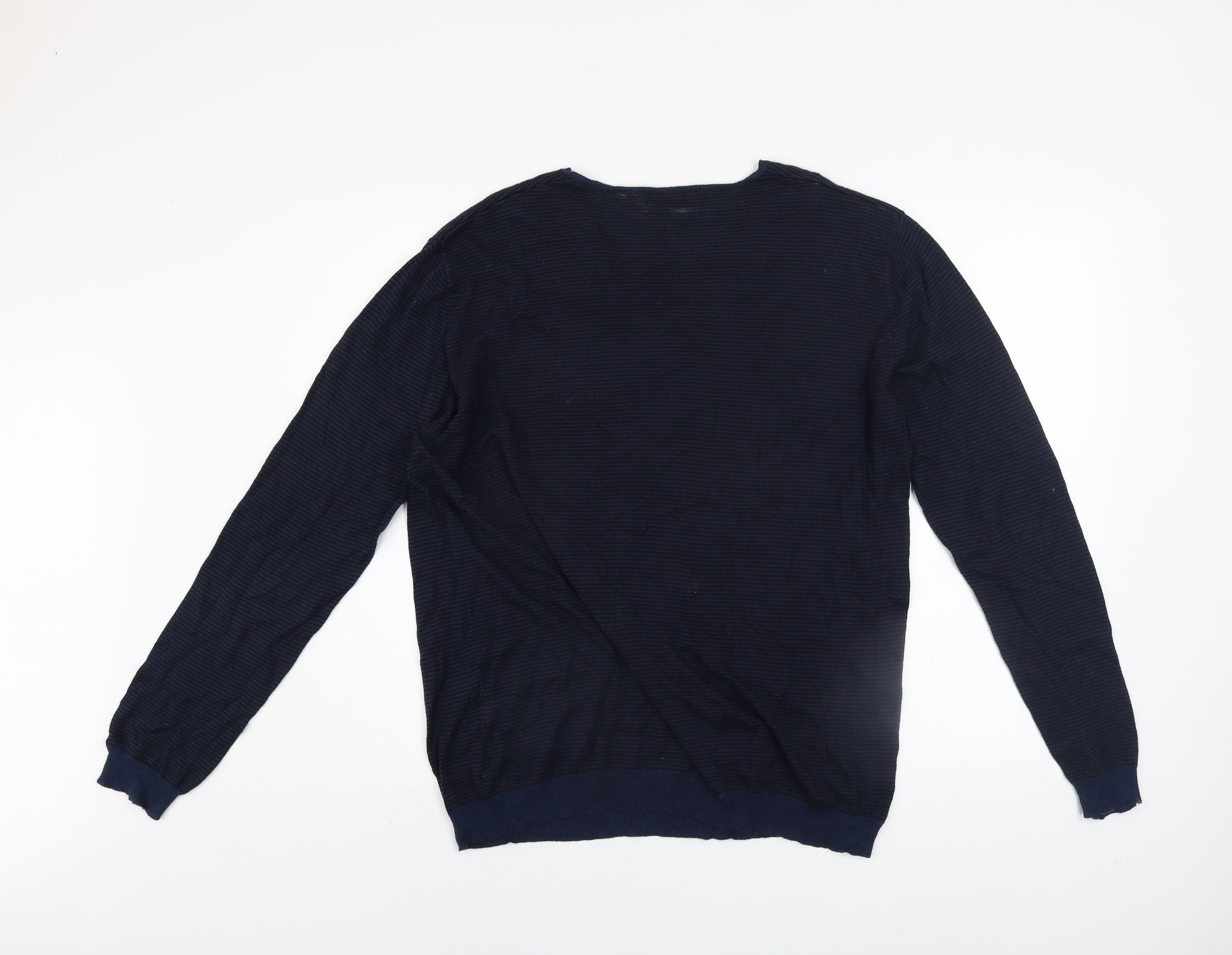 Man Blue Striped Cotton V-Neck Jumper XL Regular Fit
