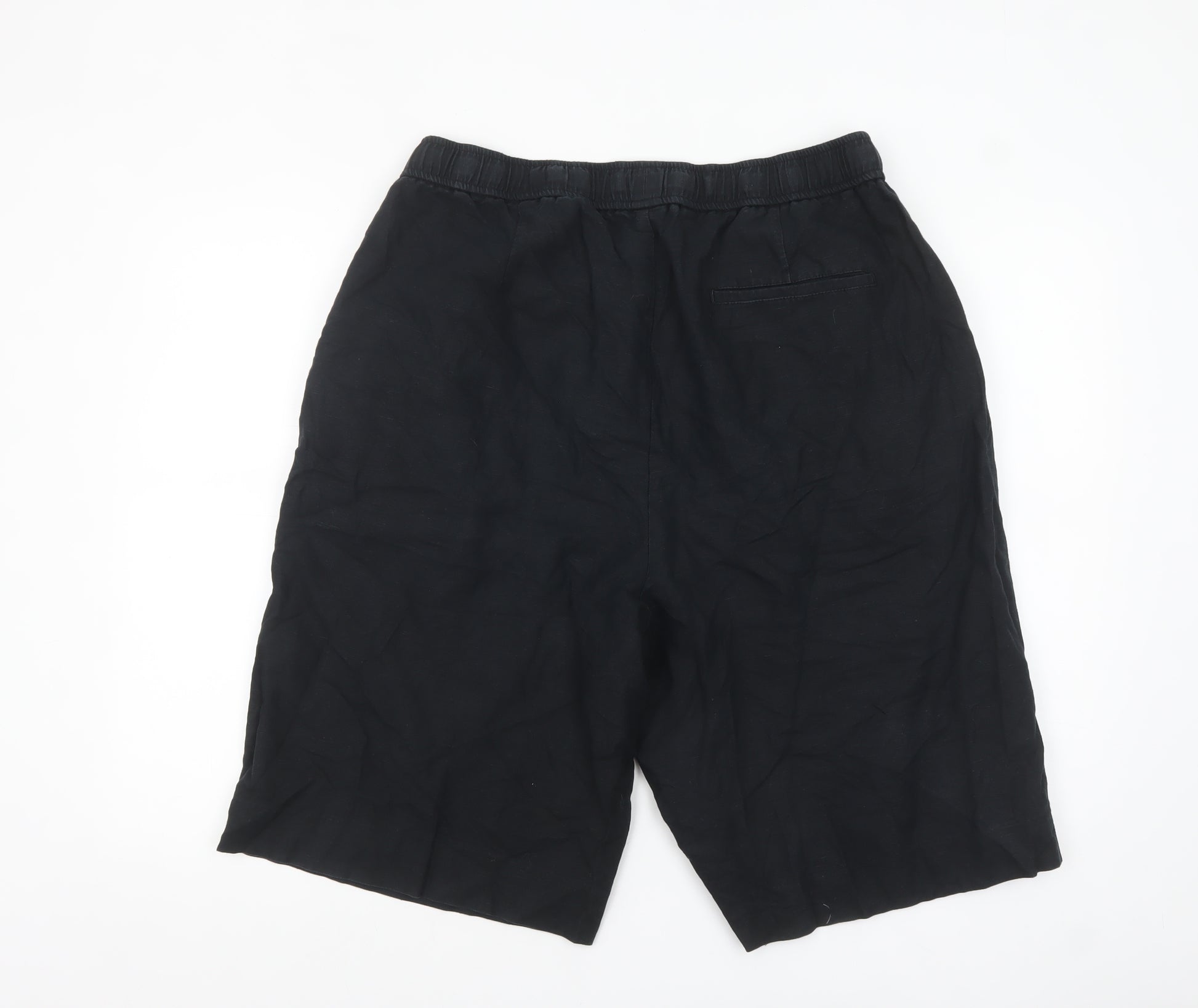 ZARA Men Black Linen Blend Drawstring Chino Shorts XL