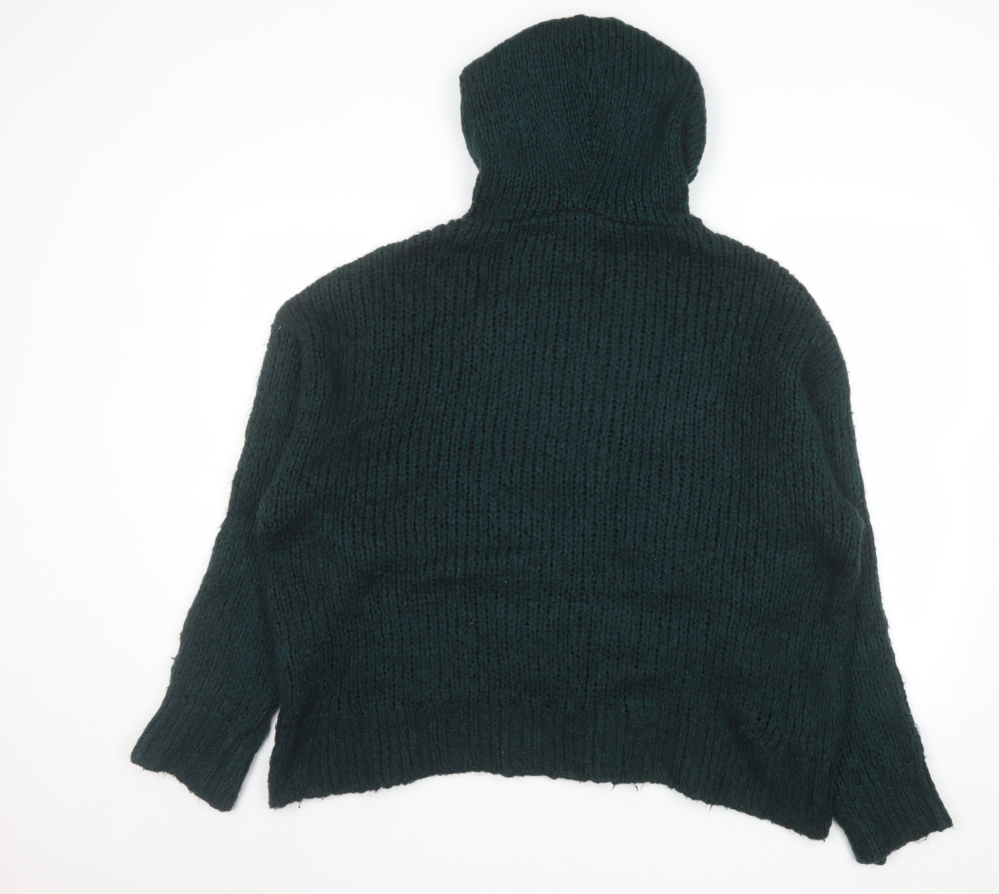 Add a blend of comfort and effortless style to your cold-weather wardrobe with this men’s chunky-knit hooded pullover jumper from Zara Knit. Crafted from a soft and warm blend of 59% acrylic, 19% polyester, 14% wool, and 8% mohair, this jumper offers an invitingly textured finish and a cosy feel ideal for cooler months. The deep green hue gives it a modern and versatile touch, making it easy to pair with jeans, chinos or casual trousers for an effortlessly stylish look.Designed for relaxed wear, the jumper features a comfortable high neckline integrated with a soft hood for added warmth and style. The large front kangaroo pocket enhances its laid-back aesthetic, while the ribbed cuffs and hem provide a secure yet flexible fit. The chunky-knit construction adds a fashionable, slightly oversized silhouette that keeps you on trend through autumn and winter seasons.This Zara Knit pullover caters to comfort without compromising on fashion. The combination of quality yarns ensures both breathability and insulation, keeping you warm while maintaining a lightweight feel. Perfect for layering over shirts or wearing solo, it provides versatility suitable for everyday casual wear, lounging, travel, or even relaxed social gatherings.In excellent pre-owned condition, this piece shows minimal signs of wear with no visible damage, maintaining softness and shape. A stylish essential for the modern man, this jumper embodies practicality and understated luxury. Whether you’re heading out for a weekend walk or simply relaxing indoors, it’s a go-to choice for comfort and timeless knitwear style.Choose this Zara men’s green hooded jumper for a sophisticated yet easygoing layer that exudes effortless charm and superior comfort through the colder seasons.