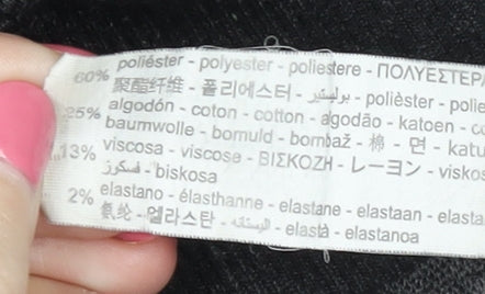 Elevate your wardrobe with this stylish black sweatshirt by Zara, perfect for any occasion. Crafted for men, this apparel features a sleek design with long sleeves and a crew neckline. Ideally suited for regular wear, the sweatshirt showcases a comfortable fit, ensuring ease of movement while maintaining a fashionable look. Made from a blend of premium materials including 60% polyester, 25% cotton, 13% viscose, and 2% elastane, this garment offers optimal comfort and durability. Zara, a brand renowned for its contemporary fashion, presents this sweatshirt in size L, making it an excellent addition to any modern man's collection. Whether you're out for a casual day or just relaxing at home, this sweatshirt provides effortless style while keeping you warm and comfortable. With its classic solid pattern and subtle elegance, this item easily complements various outfits, becoming a go-to piece in your closet. Perfect for those cooler months, the sweatshirt's excellent condition ensures it remains a reliable choice for seasons to come, promising both style and longevity.