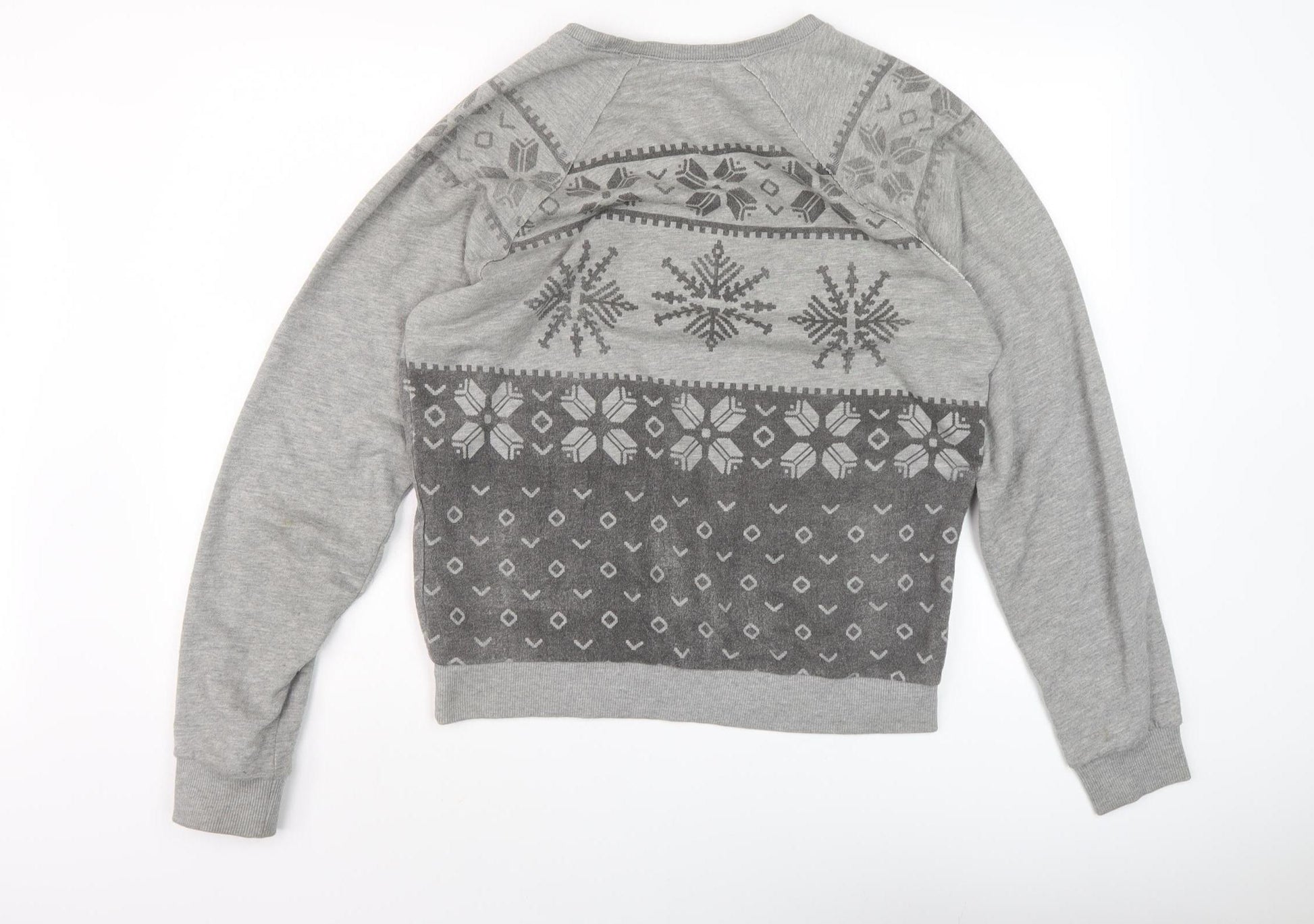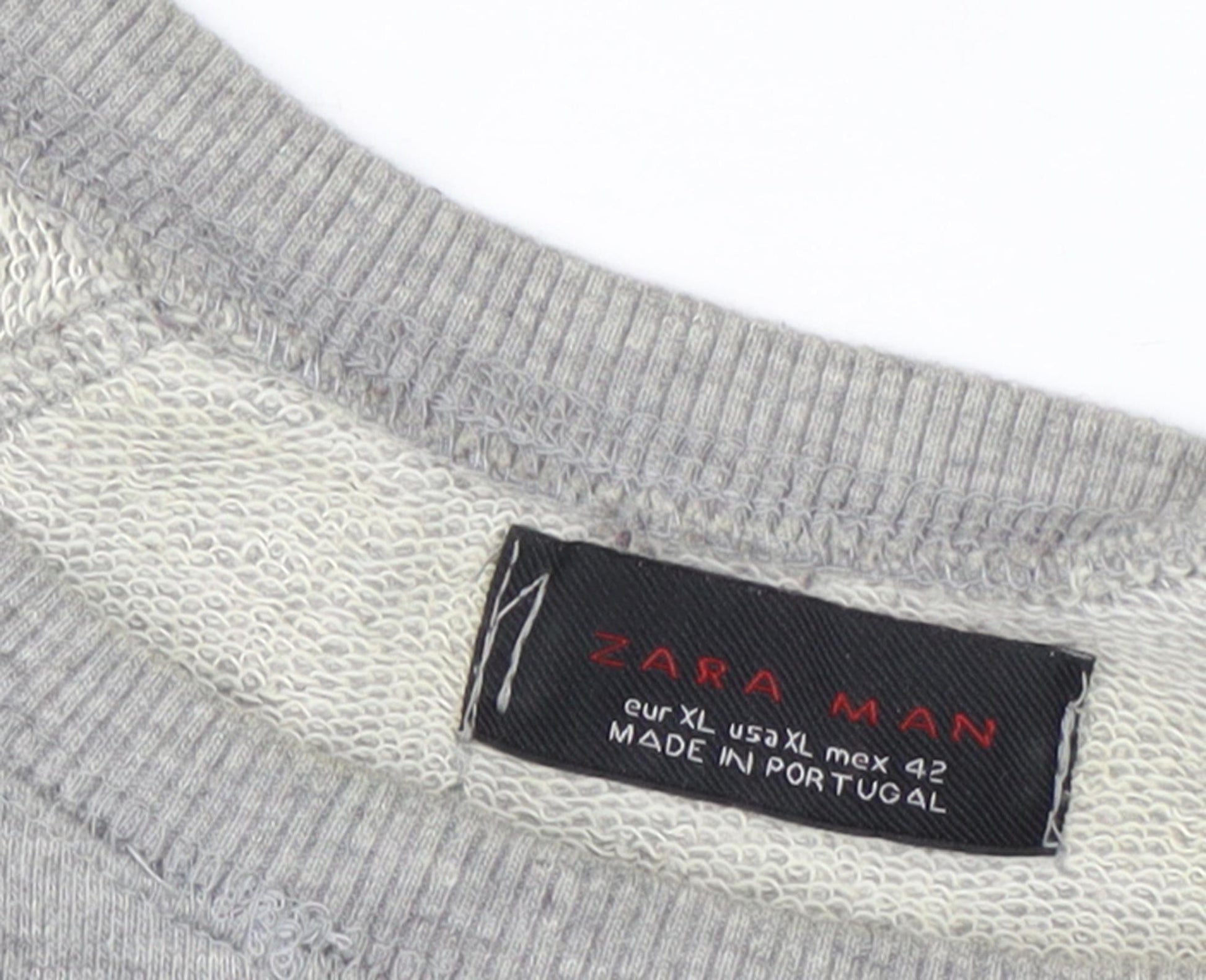 Dive into cosy style with this winter-themed Zara sweatshirt. Designed for men in a versatile grey hue, this pullover sweatshirt features an intricate geometric pattern that's perfectly suited for the autumn and winter months. Crafted from a comfortable knit blend of cotton and polyester, this sweatshirt offers durability and warmth. Its long sleeves and crew neck design provide a classic fit, making it an ideal layering piece for everyday wear. The striking graphic print adds visual interest, ensuring you stand out in any casual setting. Despite some slight wear and discolouration, this piece remains in good condition, offering style without sacrificing comfort. Whether you're heading out for a walk or relaxing indoors, elevate your wardrobe with this must-have winter staple.