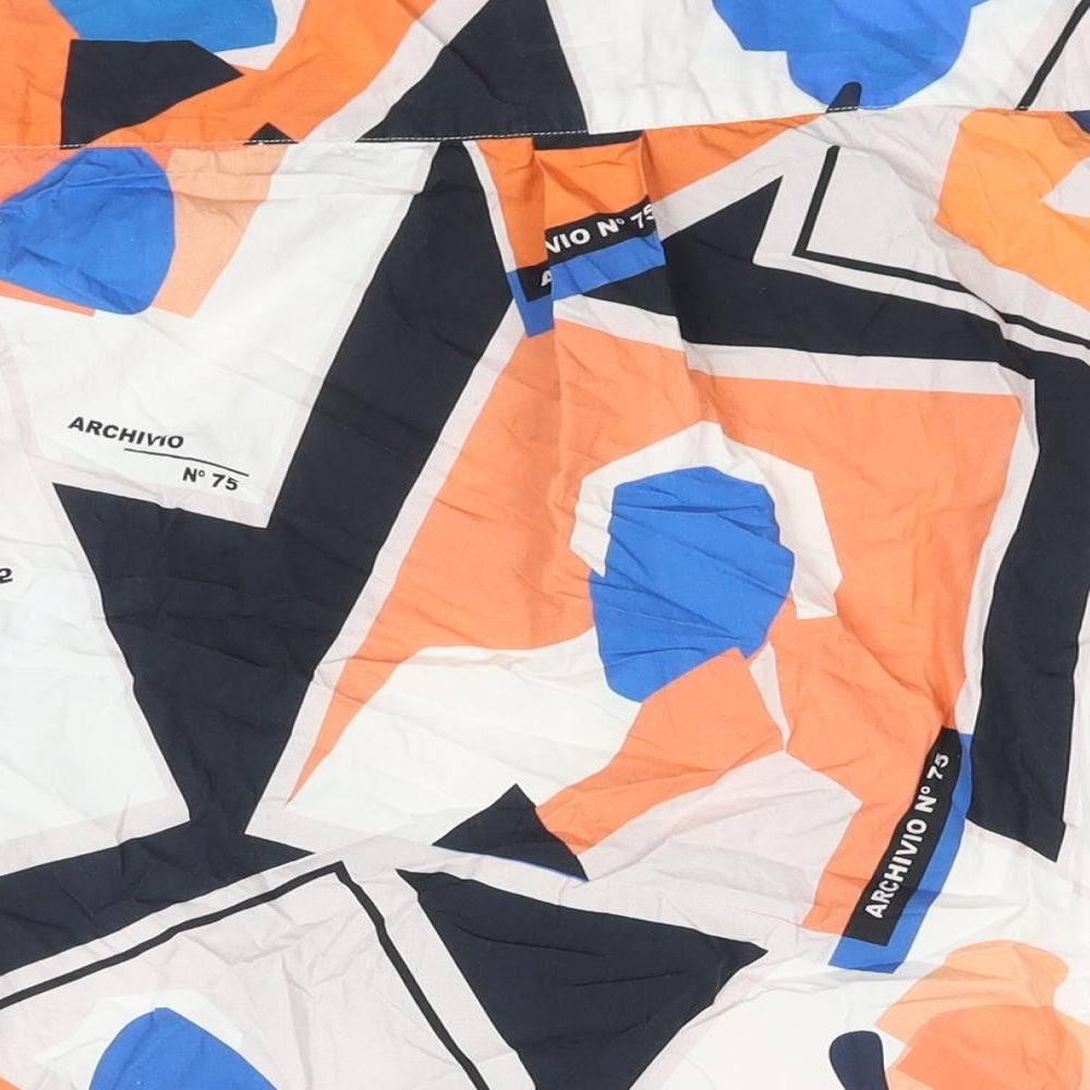Mens Multicoloured Geometric Cotton Button-Up Size L Collared Button