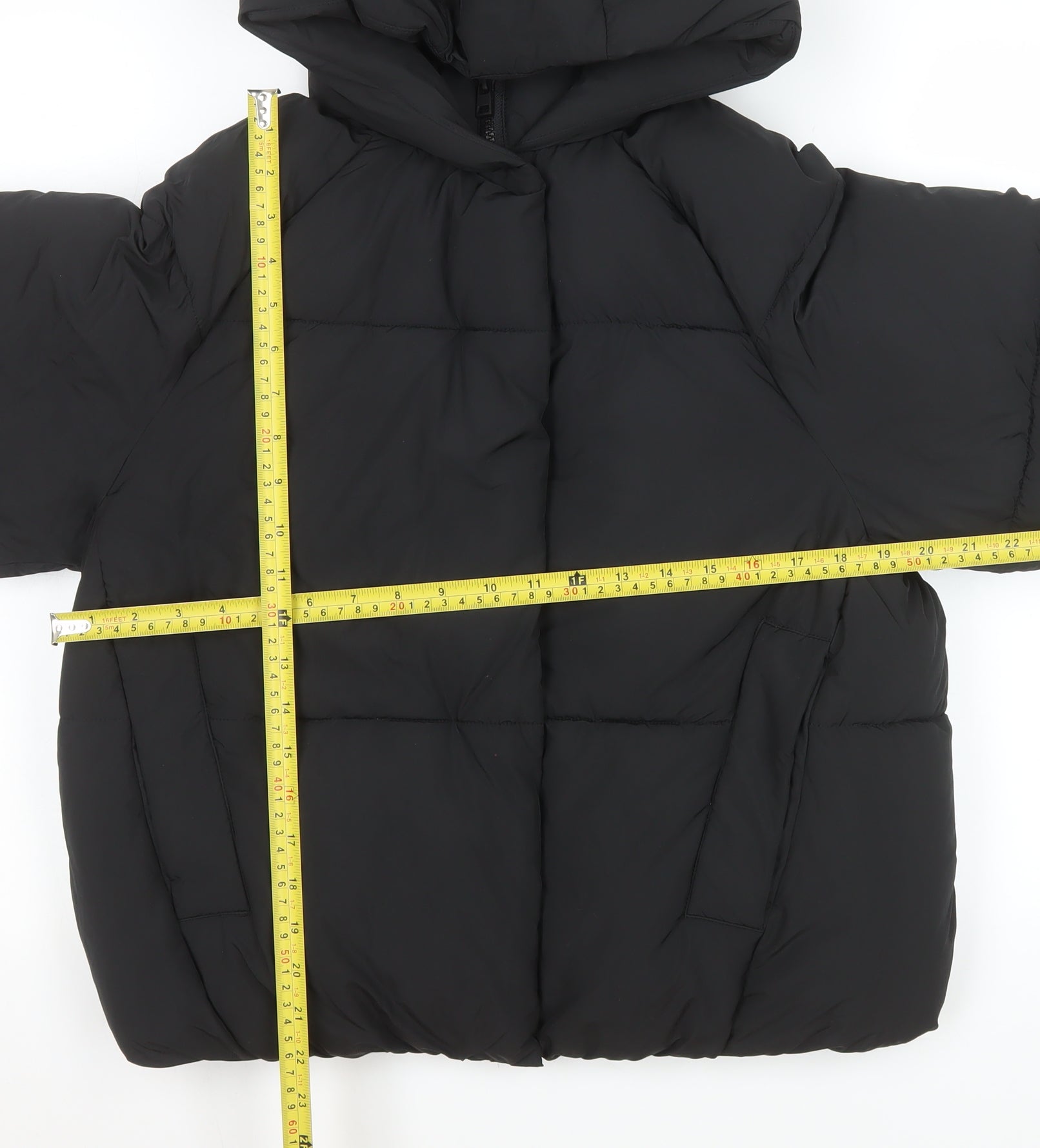 Stay warm and stylish with this Zara black puffer jacket, perfectly designed for teens who value both comfort and fashion. Crafted from durable polyester, this short padded jacket offers excellent insulation ideal for colder winter days. Featuring a sleek black colour, it pairs effortlessly with nearly any outfit, from daily essentials to casual weekend wear. The jacket includes a soft full lining and comfortable hood, giving extra warmth and protection from wind and chilly weather. A full front zip closure allows for easy layering, while two side pockets offer practicality for keeping hands warm or carrying small personal items. The short length design enhances freedom of movement, and the smooth microfibre fabric finish gives a polished, modern look. This Zara coat is lightweight yet insulated with polyester filling, providing a cosy fit without adding bulk. Its regular fit ensures relaxed comfort suitable for active teens. Built for everyday use, it’s washable for easy care, keeping it looking new throughout the season. While showing minimal signs of previous wear, it remains in excellent overall condition with no visible flaws or marks. Ideal for casual or school wear, the jacket offers reliable warmth and trending style. Whether heading to school, meeting friends, or exploring outdoors, this Zara black puffer jacket combines fashion-forward design with functionality. Pair it with jeans, leggings, or joggers for an effortless winter-ready outfit. Perfect for the colder months, it's a versatile must-have addition to your wardrobe. A trusted Zara piece that balances warmth, quality, and contemporary design, ready to keep you cosy all winter long.