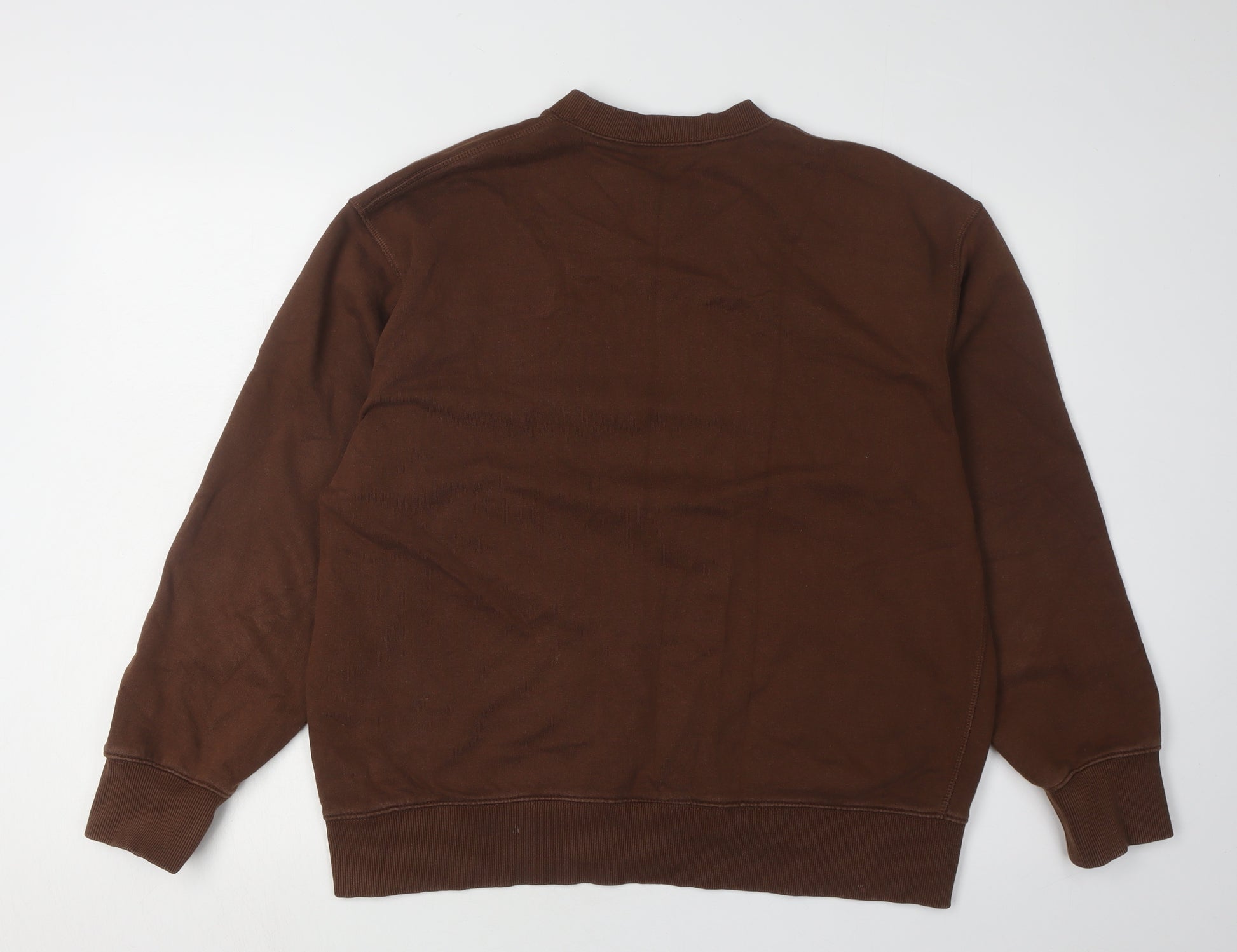 Elevate your casual wardrobe with this brown crew neck sweatshirt from Zara. Designed for unisex adults, this stylish pullover is perfect for autumn and winter outings. The regular fit and lined interior offer comfort and warmth, making it an ideal choice for casual occasions. Crafted from a blend of cotton and polyester, it promises durability while maintaining a soft feel against the skin. The sweatshirt features a neat logo accent, adding a touch of personality to your outfit. With its jersey fabric and a classic crew neck, it effortlessly combines style with comfort. Machine washable for easy care, this sweatshirt is a versatile addition to any wardrobe, suitable for both laid-back weekends and leisurely outings.