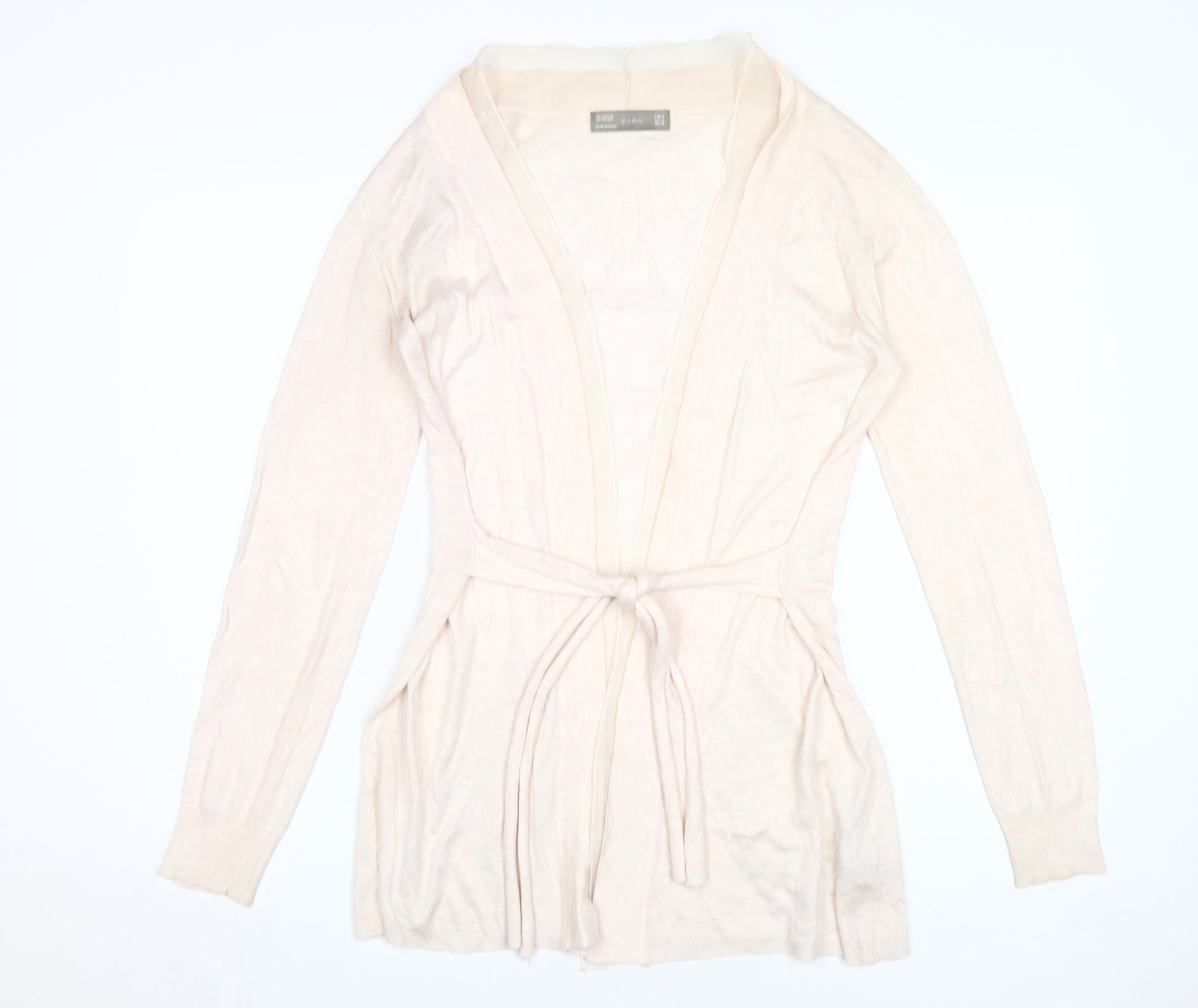 Elevate your casual wardrobe with this elegant beige cardigan from Zara. Crafted with a blend of acrylic and viscose, this knit cardigan ensures comfort and style, making it a versatile addition to any outfit. The V-neck design and belted waist enhance its feminine silhouette, perfect for adding a touch of sophistication to your everyday look. Ideal for layering in the cooler seasons of spring and autumn, this cardigan is a must-have for fashion-forward women. With its regular fit and long sleeves, it provides just the right amount of warmth while maintaining a chic and polished appearance. Designed for women, this piece is an excellent choice for casual occasions, effortlessly pairing with jeans or a skirt. Though in excellent condition with no visible tags, this well-maintained cardigan is priced competitively, offering incredible value without compromising on style. Add this Zara cardigan to your collection and experience the blend of modern design and timeless elegance.