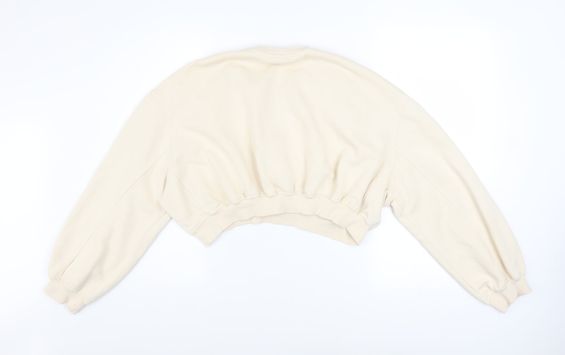 ZARA Women Beige Cropped Pullover Sweatshirt Size S
