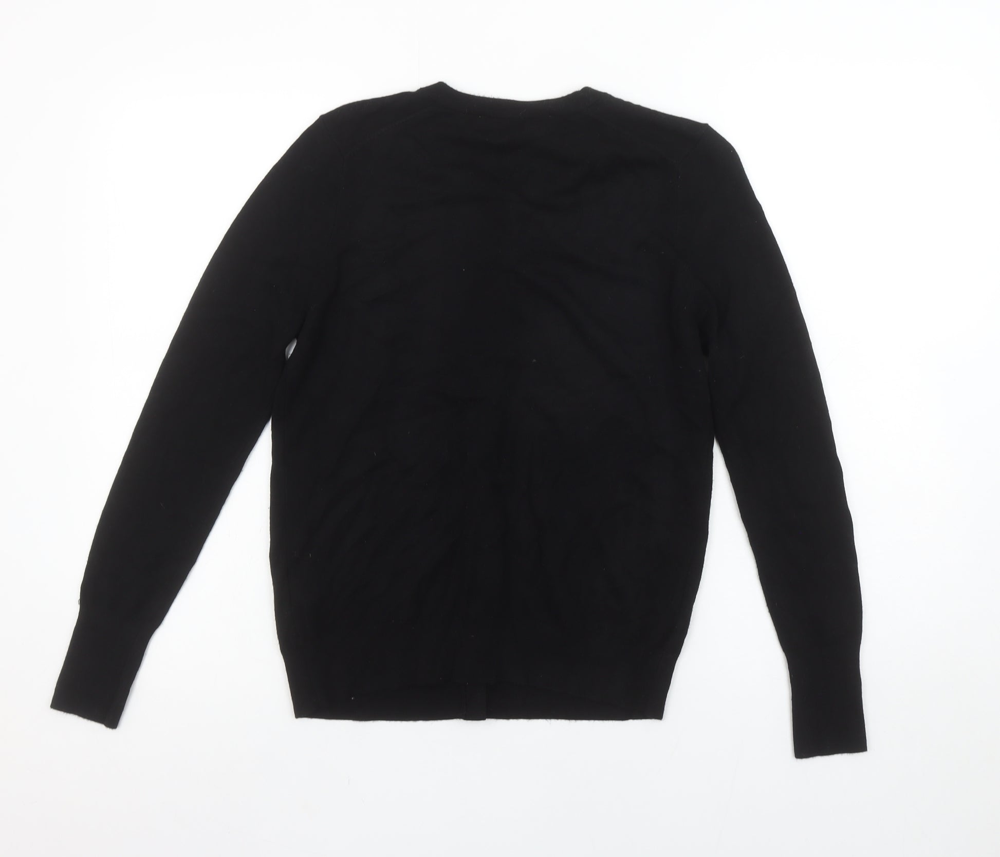 Women Black Crew Neck Button Front Cardigan Size 12