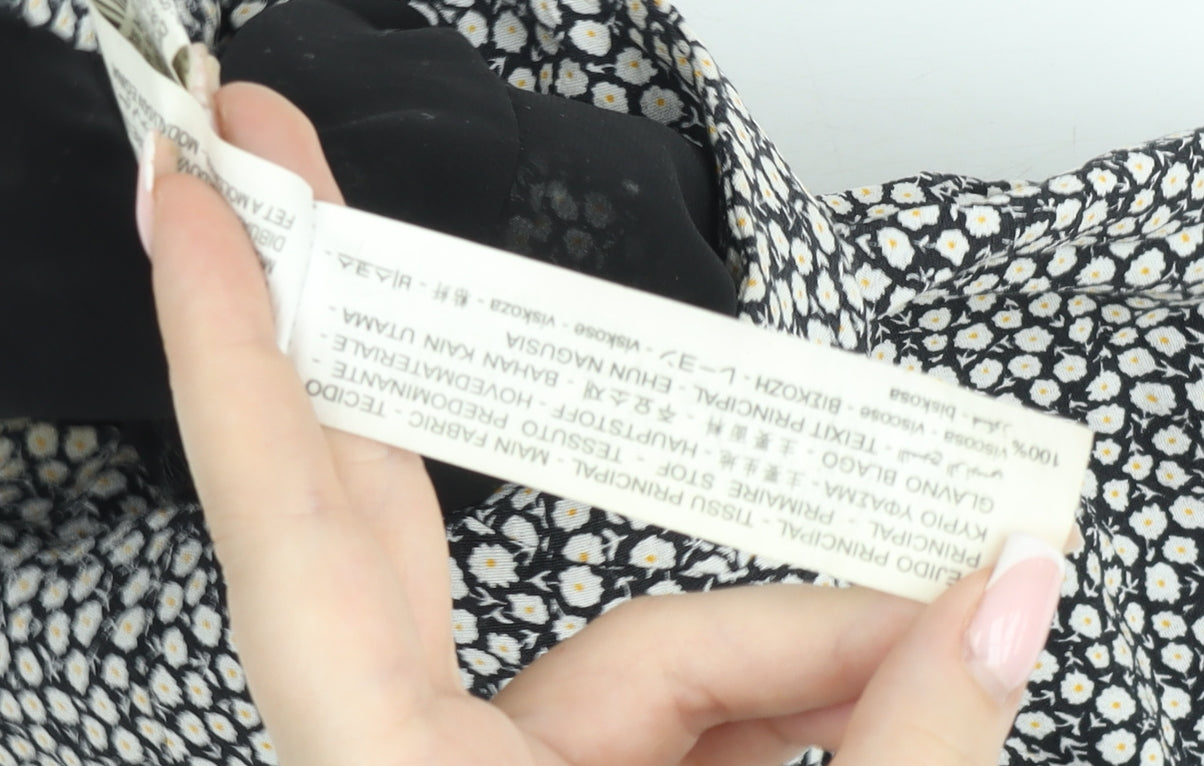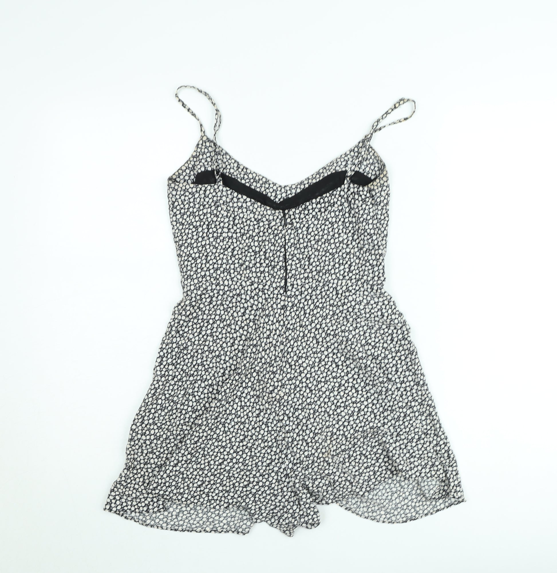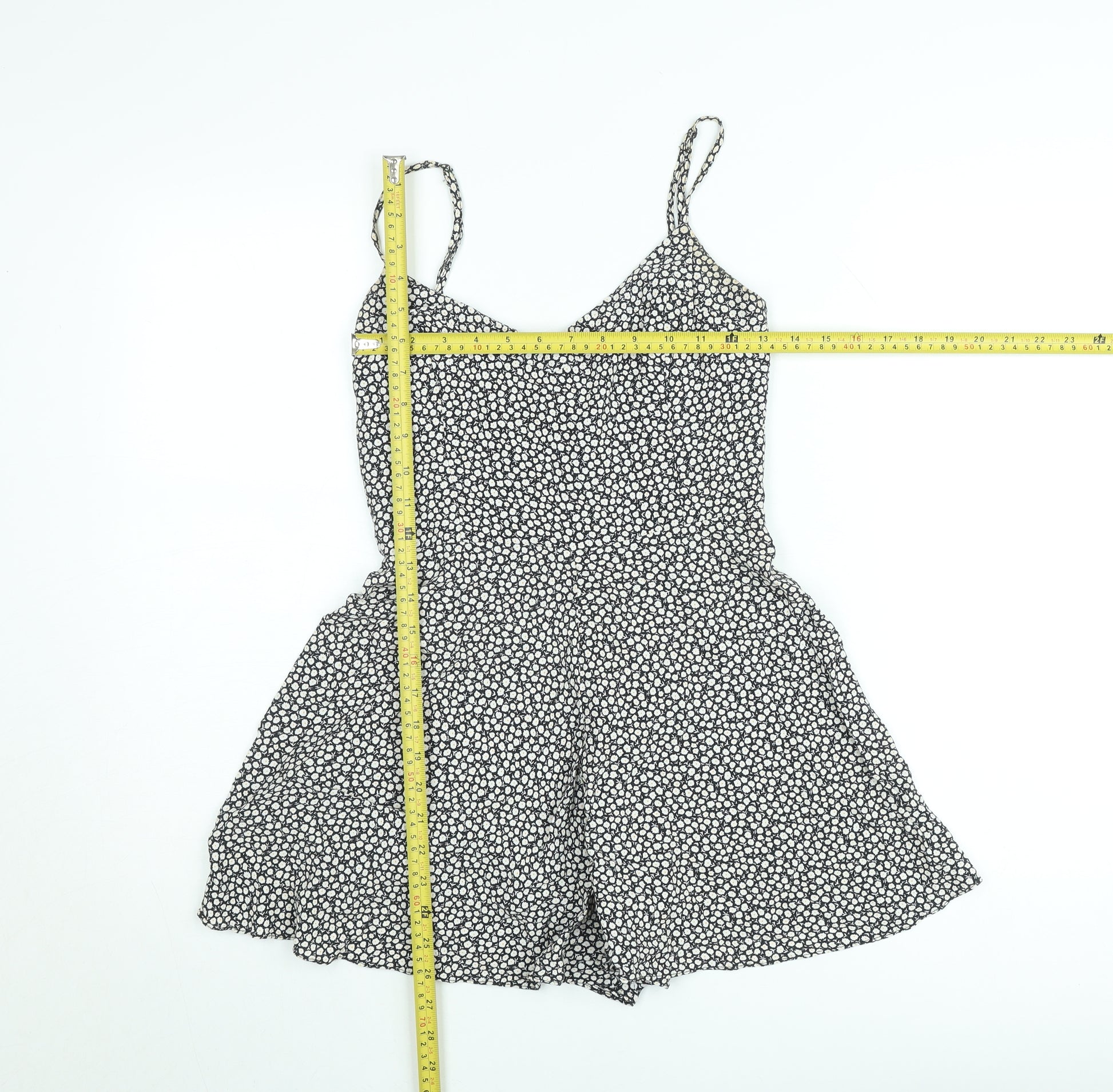Women Black Floral Playsuit XS Viscose Strappy Summer Romper