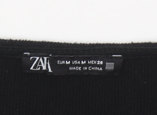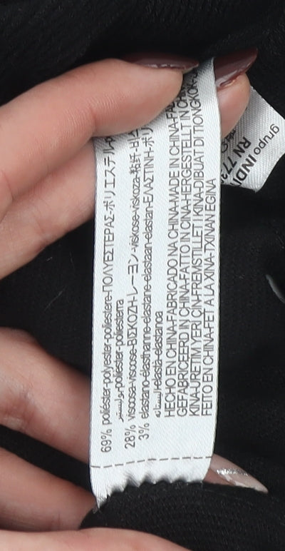 Add an effortlessly stylish piece to your wardrobe with this elegant black long sleeve cropped top from Zara. Designed for modern women, this slim-fit knit top combines timeless minimalism with contemporary appeal. Crafted from a soft stretch fabric blend of polyester, viscose, and elastane, it ensures comfort, breathability, and a flattering silhouette that moves naturally with your body. The scoop neckline adds a touch of femininity, perfect for layering with necklaces or pairing with high-waisted jeans, skirts, or smart trousers for an elevated, chic look. The cropped cut gives it a modern edge, while the long fitted sleeves provide coverage and warmth, making it ideal for cooler months such as autumn, winter, and early spring. Its lightweight and flexible feel allows for easy styling versatility, whether for casual days, evenings out, or fashionable workwear layering. This Zara top is machine washable, ensuring practicality in addition to style. The solid black colour makes it an essential staple that seamlessly coordinates with a variety of other wardrobe pieces. Designed with a smooth, soft knit texture, it offers both comfort and sophistication in one easy-to-wear garment. Perfect for casual wear, travel, or stylish everyday ensembles, this top embodies the brand’s commitment to effortless contemporary fashion. In excellent pre-loved condition with light signs of wear but no visible flaws, this piece retains its high-quality look and feel. For those who appreciate versatile, sleek designs, this Zara Women’s Long Sleeve Scoop Neck Cropped Knit Top is a timeless staple that can easily transition from day to night. Pair it with statement accessories, structured blazers, or relaxed denims to create a personalised look that suits any occasion. A simple yet captivating addition to any wardrobe.