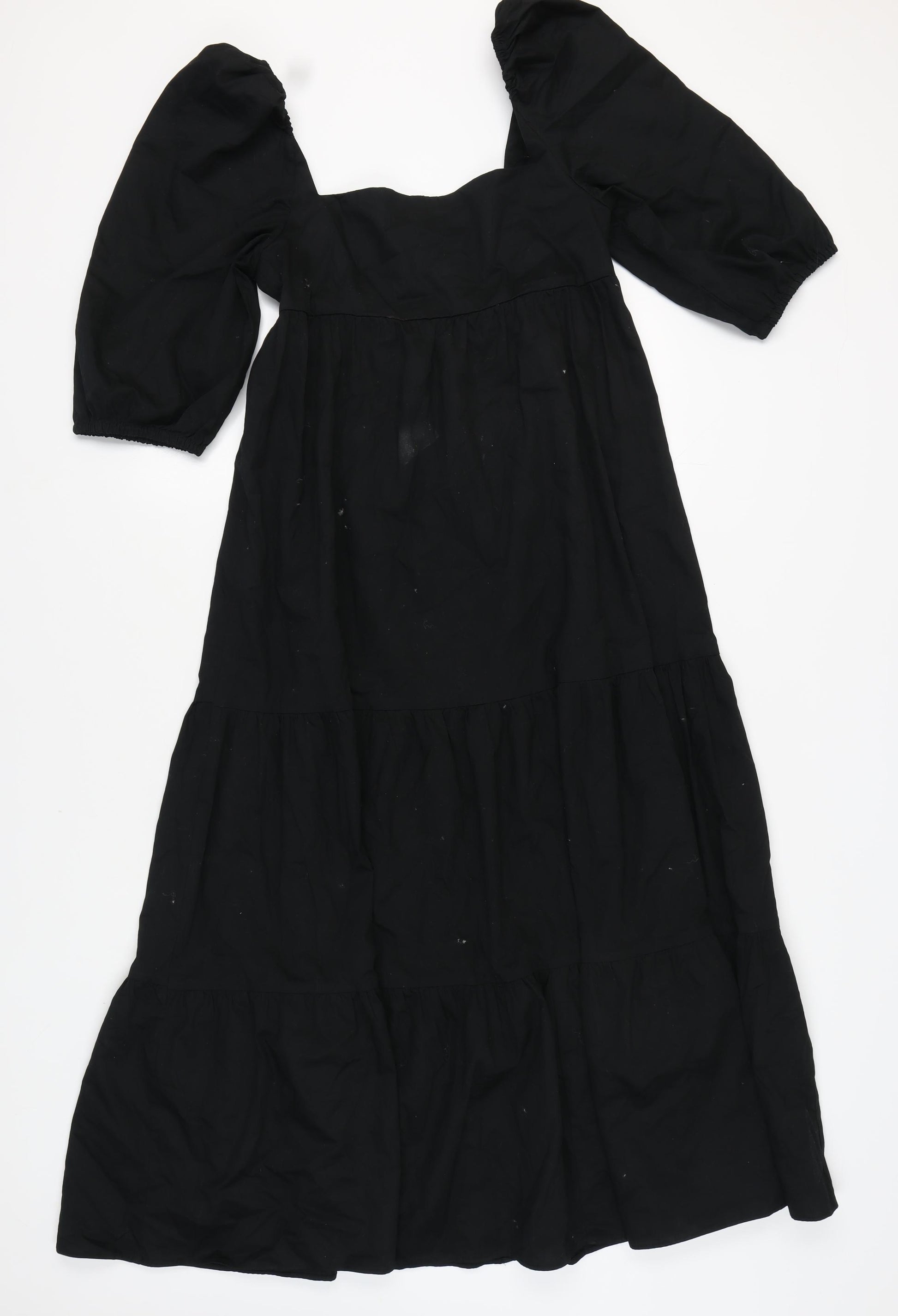 Elevate your wardrobe with this elegant black maxi dress from Zara, designed specifically for women who love a classic yet contemporary style. Perfect for autumn and winter, this dress offers a versatile look that can transition seamlessly from casual outings to more relaxed evening events. Crafted from high-quality cotton, the dress promises comfort and durability, ideal for those who appreciate both style and substance. The 3/4 puff sleeves add a touch of drama while maintaining an elegant aesthetic, and the square neckline provides a flattering silhouette. The smocked detail at the bust offers a snug fit, accentuating your shape beautifully. This dress features a pullover style for ease of wear, making it not only stylish but practical. Designed for a regular fit, it boasts a midi length that allows for an effortlessly flowing movement, perfect for staying comfortable and chic all day long. Pair it with your favourite boots and accessories to complete the look, whether you're headed to a casual gathering or enjoying a leisurely day out. Its deep black hue offers endless possibilities for styling and mixing and matching with other items in your closet. Don't miss the chance to own this versatile piece that combines classic charm with modern chic. Perfect for those who value simplicity with a sophisticated edge.