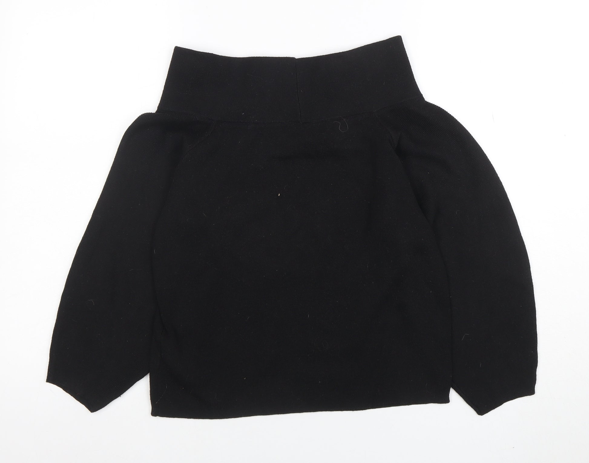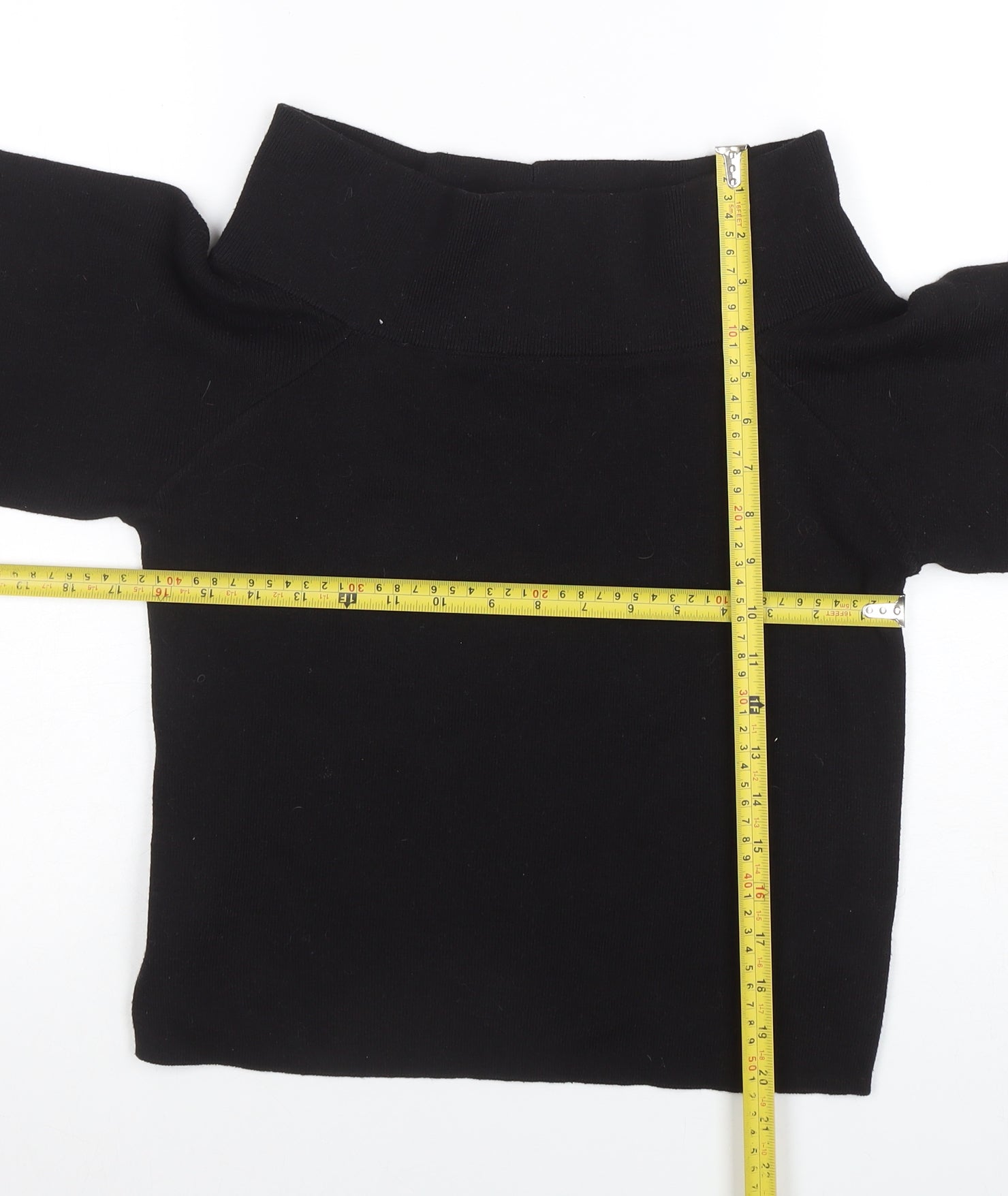 Elevate your wardrobe with this timeless black off-the-shoulder top from Zara, crafted for modern women who appreciate effortless style and comfort. Designed in a soft knit fabric, this long sleeve blouse is made from a premium mix of polyester, acrylic, and a touch of wool, offering warmth and durability while maintaining a lightweight feel. The off-the-shoulder neckline adds a flattering, feminine touch, making it a versatile addition to your wardrobe whether you're dressing for casual weekends or layering for autumn and winter evenings. The solid black colour gives it endless styling potential — pair it with tailored trousers for a sleek office look, or with jeans and heels for an evening out. Constructed with a relaxed yet flattering regular fit, this knit top features a stretchable texture that moves comfortably with your body. The raglan sleeve design gives it a soft, natural drape across the shoulders, adding to its laid-back appeal. Machine washable for easy care, this top embodies practicality and elegance alike. In excellent pre-loved condition, this item shows minimal signs of gentle wear with no visible damage, ensuring plenty of life left to enjoy. Perfect for women who love chic simplicity and refined casualwear, this Zara off-shoulder knit top easily transitions from day to night. Its mix of seasonal functionality and understated style makes it an essential piece for autumn and winter layering. A wardrobe staple that never goes out of fashion, this top will quickly become a favourite go-to piece for various occasions. Priced attractively for its quality and condition, this item offers an excellent balance of value and style.