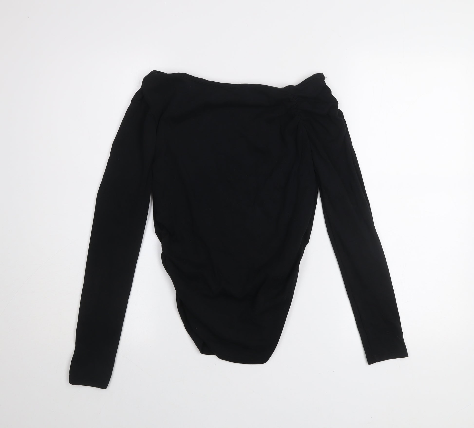 Women Black Off Shoulder Long Sleeve Jersey Blouse - Size L