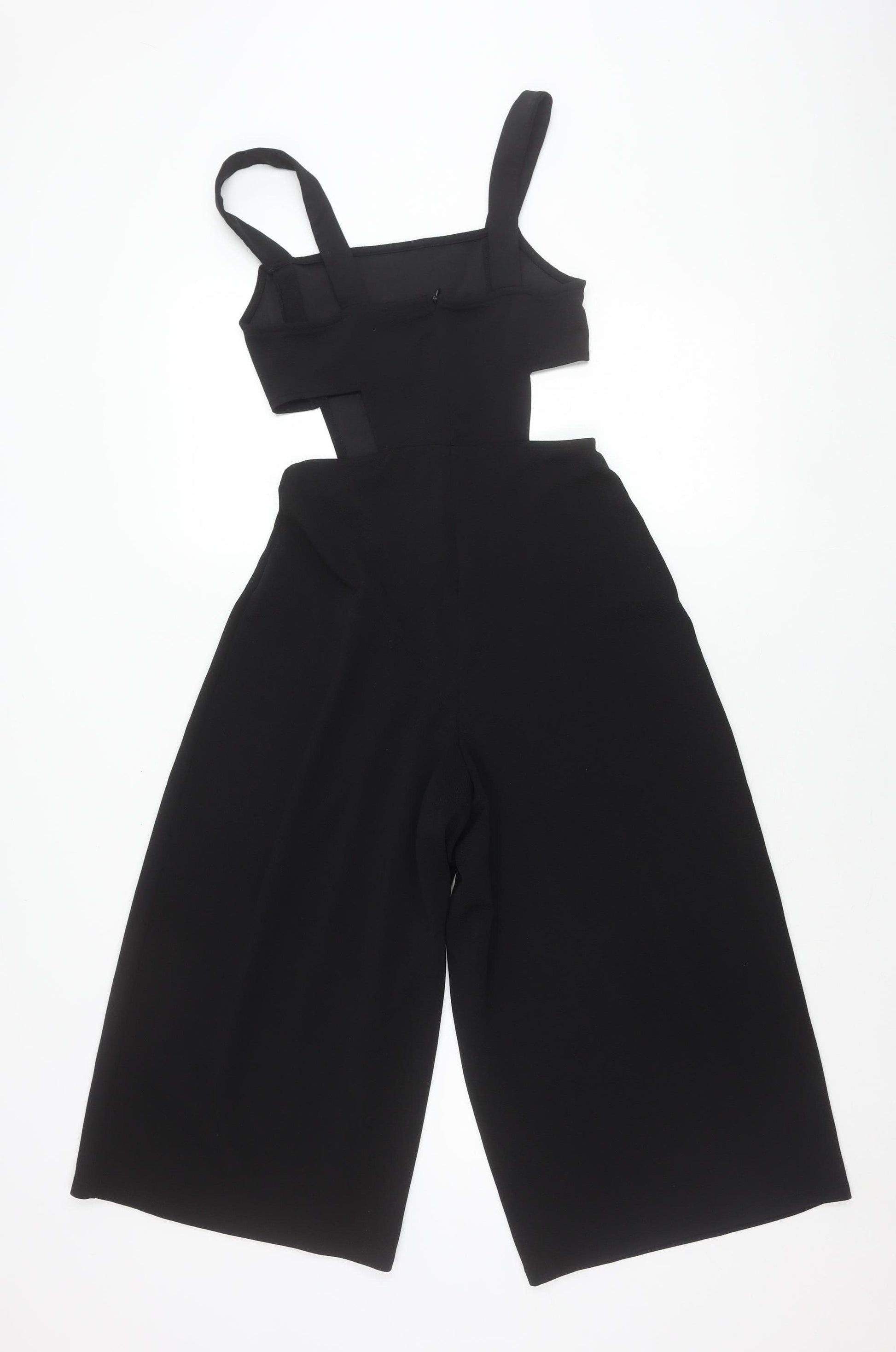 Women Black Square Neck Wide Leg Jumpsuit Size M