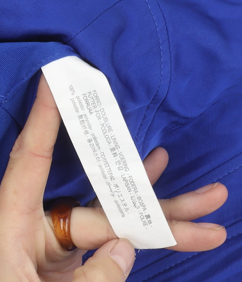 Elevate your wardrobe with this stunning blue top from Zara, perfect for women who appreciate a blend of simplicity and style. Crafted with 100% polyester, this top offers a soft and comfortable feel against the skin, ensuring you stay stylish and comfortable throughout the day. The top features a solid pattern accompanied by a convenient zip closure, making it not only fashionable but also easy to wear. The rich blue colour offers a bold statement, ideal for both casual outings and more formal occasions. Designed for women, it fits a UK size 12, catering to regular size types. This versatile piece is perfect for adding a pop of colour to your ensemble and can be effortlessly paired with jeans for a casual look or a sleek skirt for a more polished outfit. Despite being pre-owned, this top is in excellent condition, showcasing no visible damage, ensuring that you'll be receiving a high-quality and reliable garment. Perfect for those who prefer a minimalist yet chic style, this Zara top is a must-have addition to your collection. Priced reasonably, this charming piece is a fantastic find for any fashion enthusiast looking to make a statement without breaking the bank.