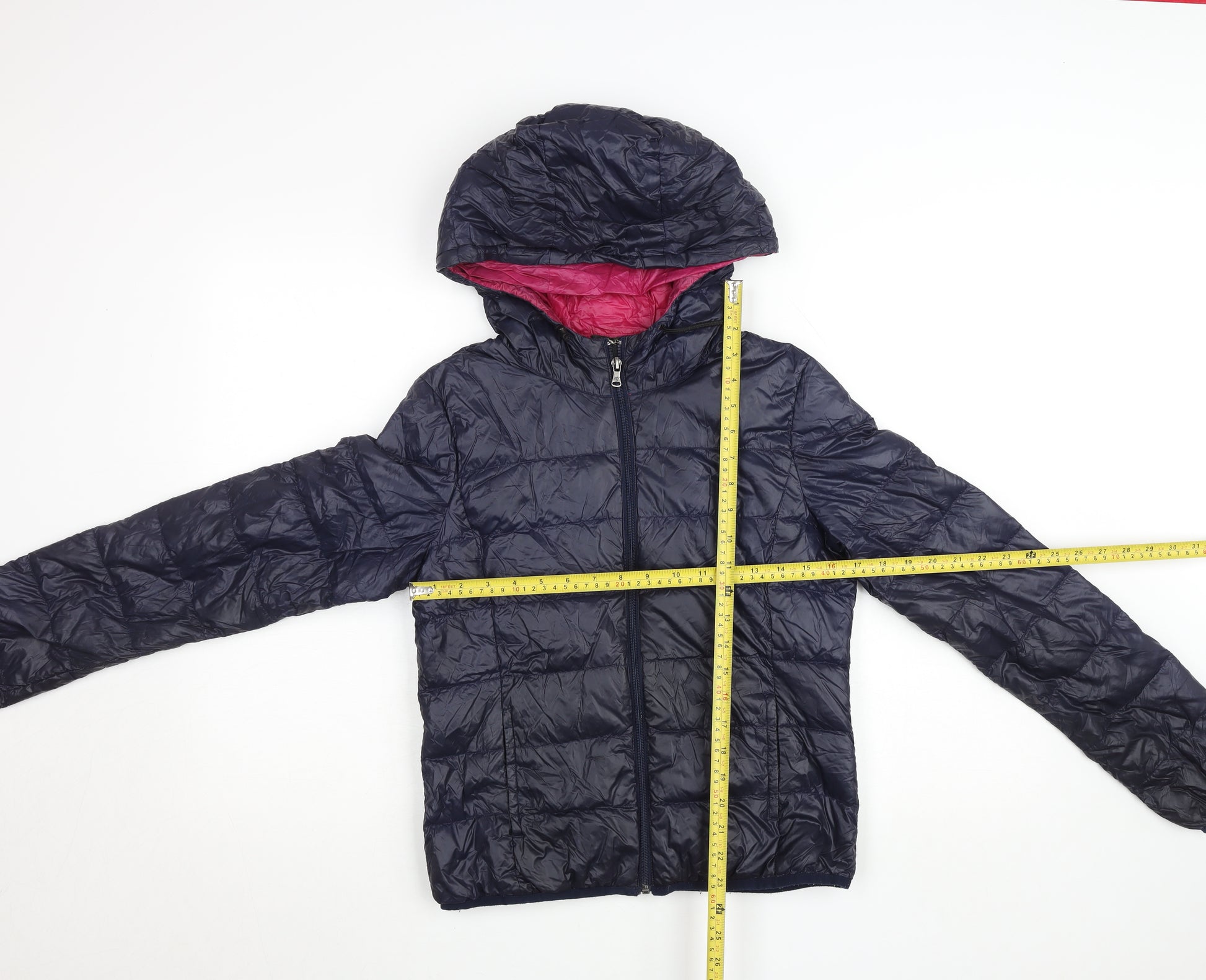 Women Blue L Puffer Jacket Hooded Down Lightweight Warm Wear