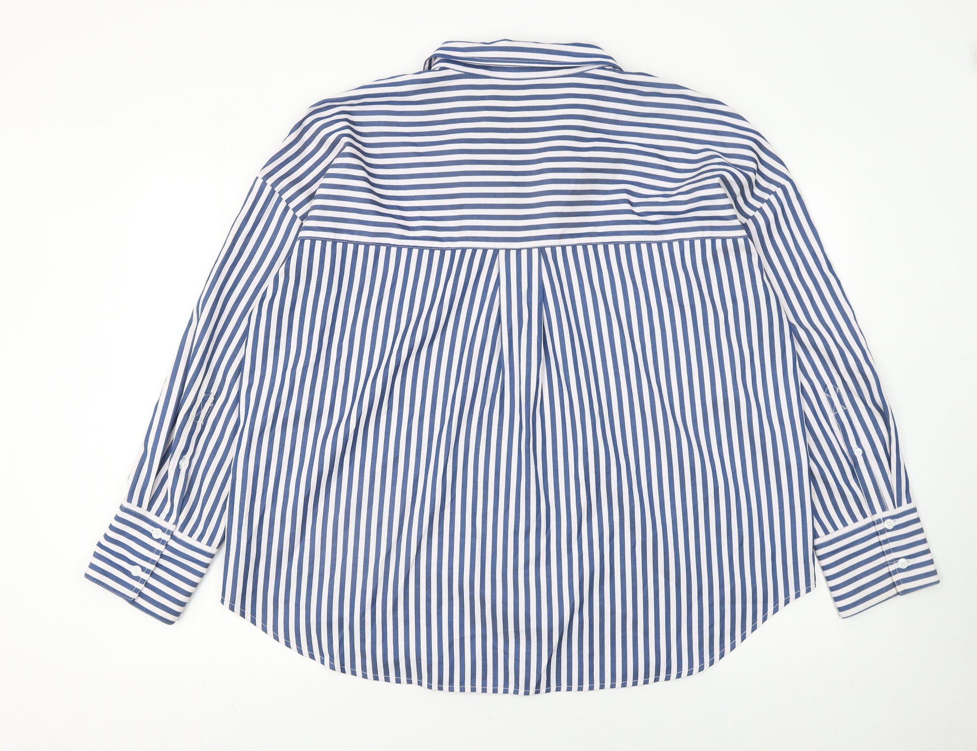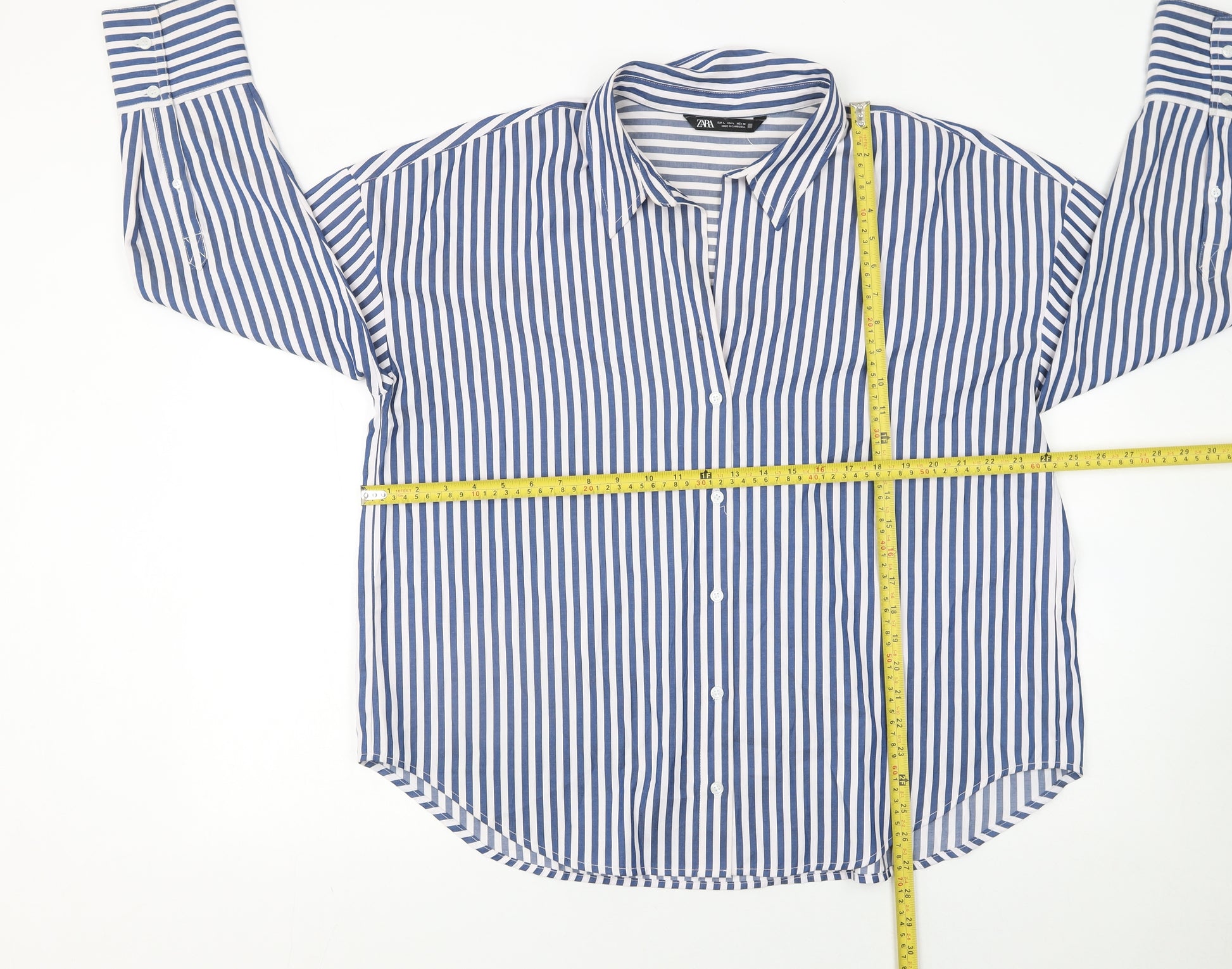 ZARA Women Blue Striped Button-Up Long Sleeve Shirt L