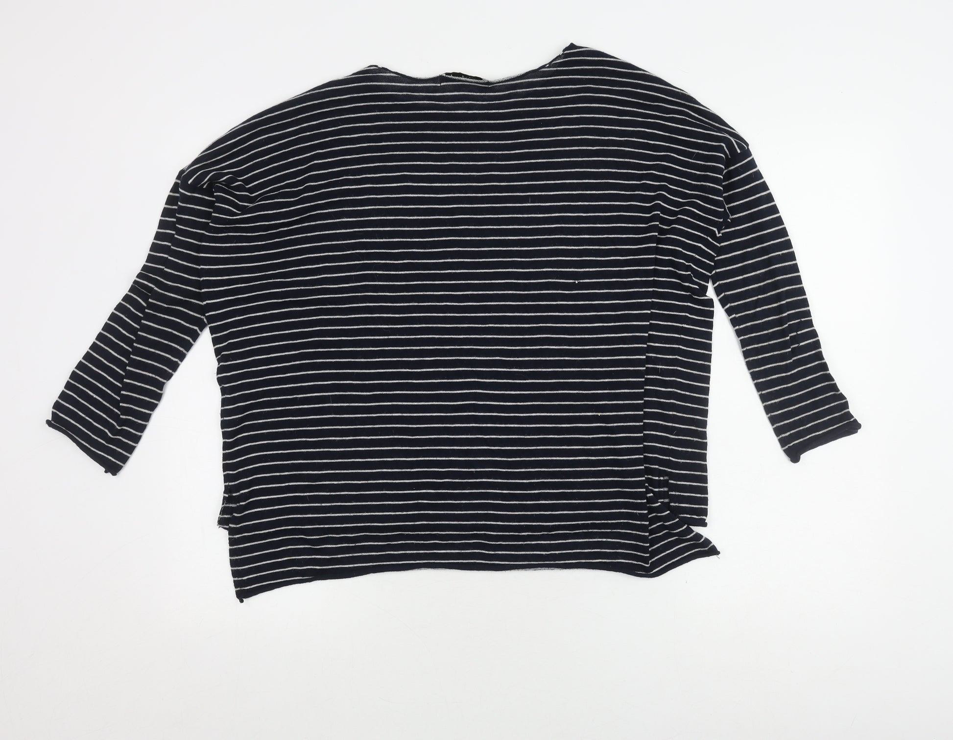 Women Blue Striped Cotton Pullover Jumper Size S