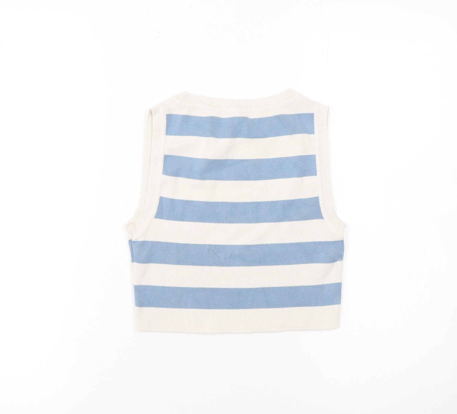 ZARA Women Blue White Striped Cropped Sleeveless Knit Tank Top Size S