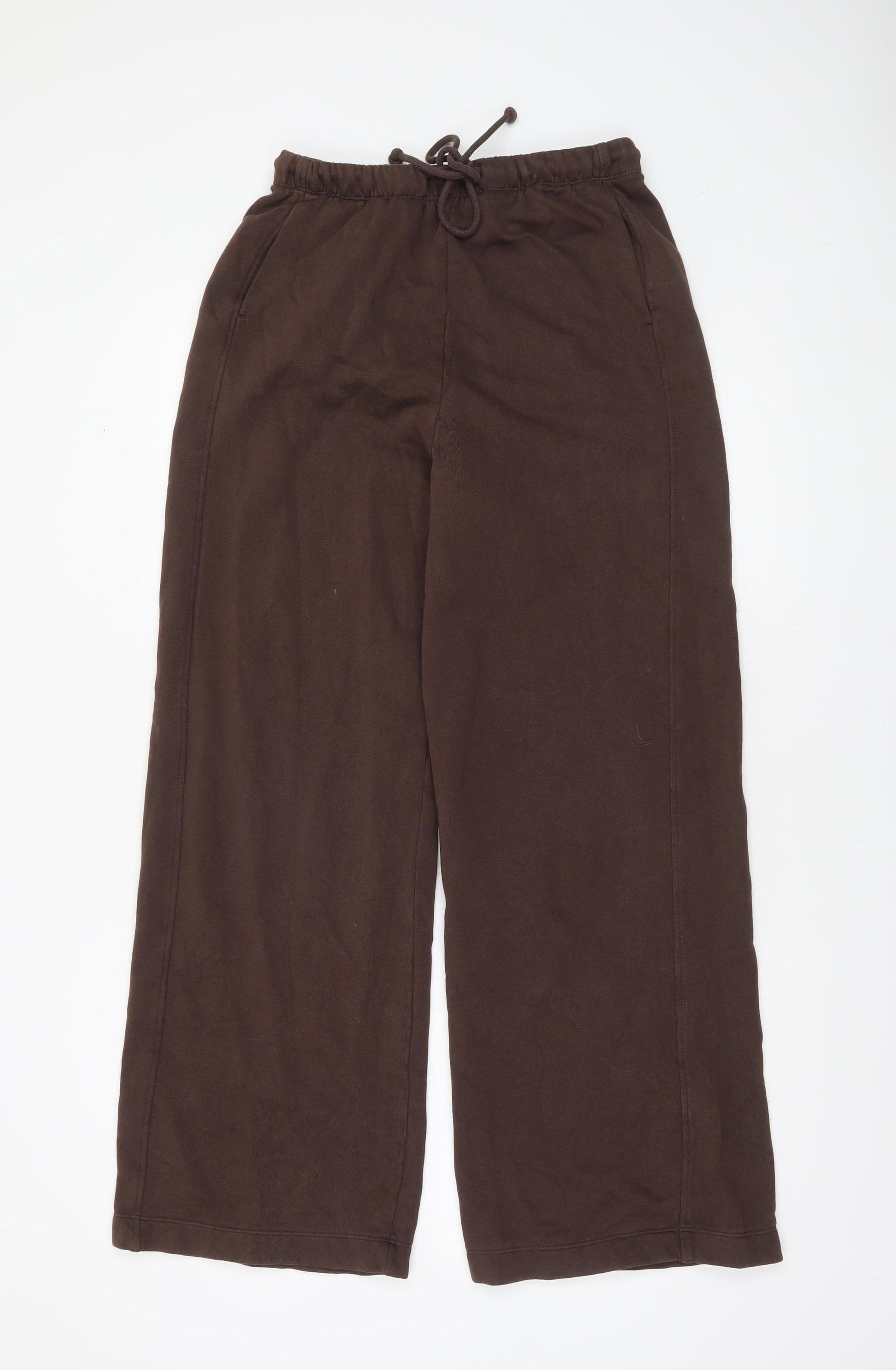 Women Brown Cotton Straight Leg Sweatpants Size S