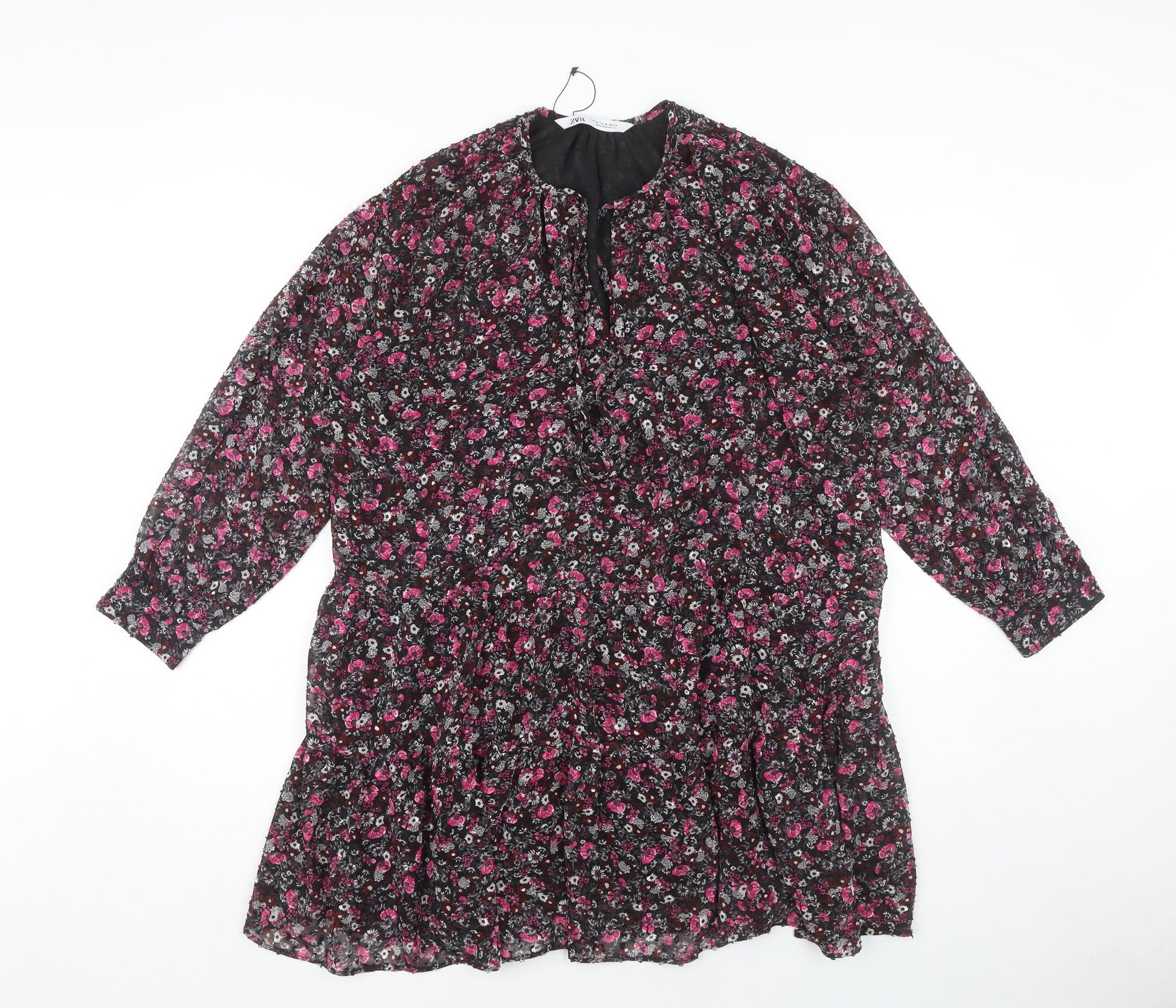 Add a touch of bohemian flair to your wardrobe with this charming floral dress from Zara. Designed with a casual yet stylish appeal, this dress features a captivating multicoloured floral pattern that is perfect for both spring and autumn seasons. The long sleeves and woven polyester fabric provide a comfortable fit, making it an ideal choice for everyday wear. Crafted for women, this dress in size M ensures a flattering silhouette, while being easy to care for, it's machine washable and maintains its vibrant look after every wash. Whether you're heading to a brunch or a casual day out, this Zara dress offers both comfort and style. Pair it with your favourite accessories to create a look that's all your own.