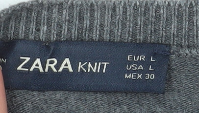 Elevate your everyday wardrobe with this timeless grey cardigan from ZARA. Crafted from a soft and warm wool blend, it offers both comfort and style, making it a versatile addition to any woman's collection. The cardigan features a flattering regular fit with a classic crew neckline, designed to complement both smart and casual looks. Finished with charming pearl-like button accents along the front and cuffs, it brings a refined touch of elegance to your outfit. The long sleeves and fine, tight-knit texture provide a cosy yet lightweight layer, ideal for cooler autumn and winter days. Perfect for slipping on over a blouse for workwear chic or pairing with jeans for relaxed weekend wear. The neutral grey shade ensures effortless styling with your existing wardrobe, offering endless mix-and-match potential. Whether dressing up or down, this cardigan will see you through the seasons in sophisticated comfort. Expertly designed by ZARA, renowned for their modern feminine style, this cardigan is made with quality materials that ensure durability and softness. It remains in excellent pre-loved condition, showing minimal signs of wear and retaining its shape beautifully. A must-have layering piece that combines understated style with everyday practicality — versatile, soft, and endlessly wearable, it’s an ideal choice for anyone looking to refresh their knitwear collection with a polished essential. Treat yourself to this ZARA grey cardigan and enjoy effortless elegance all year round.