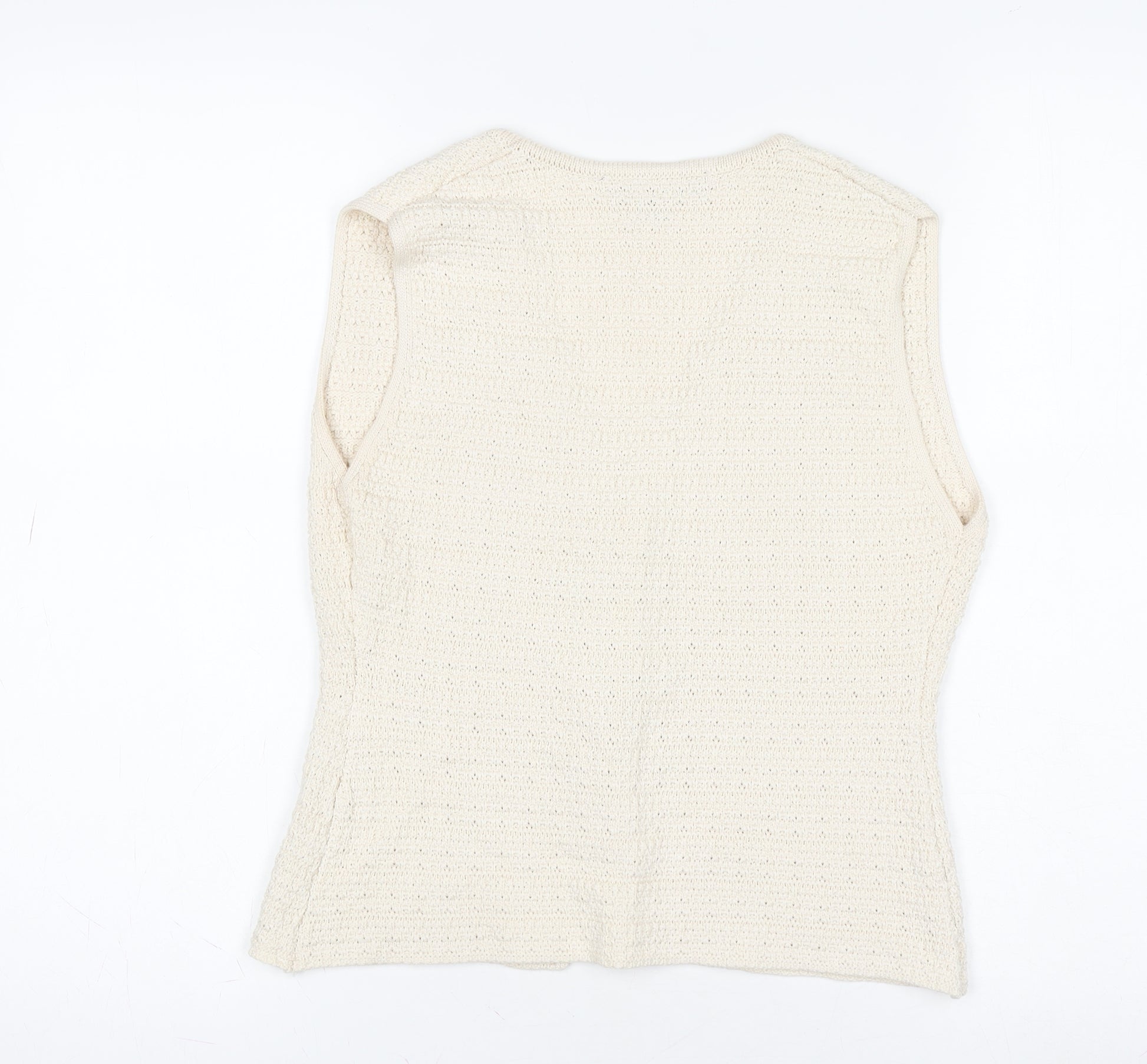 Women Ivory Knit Sleeveless Button Blouse Top Size S