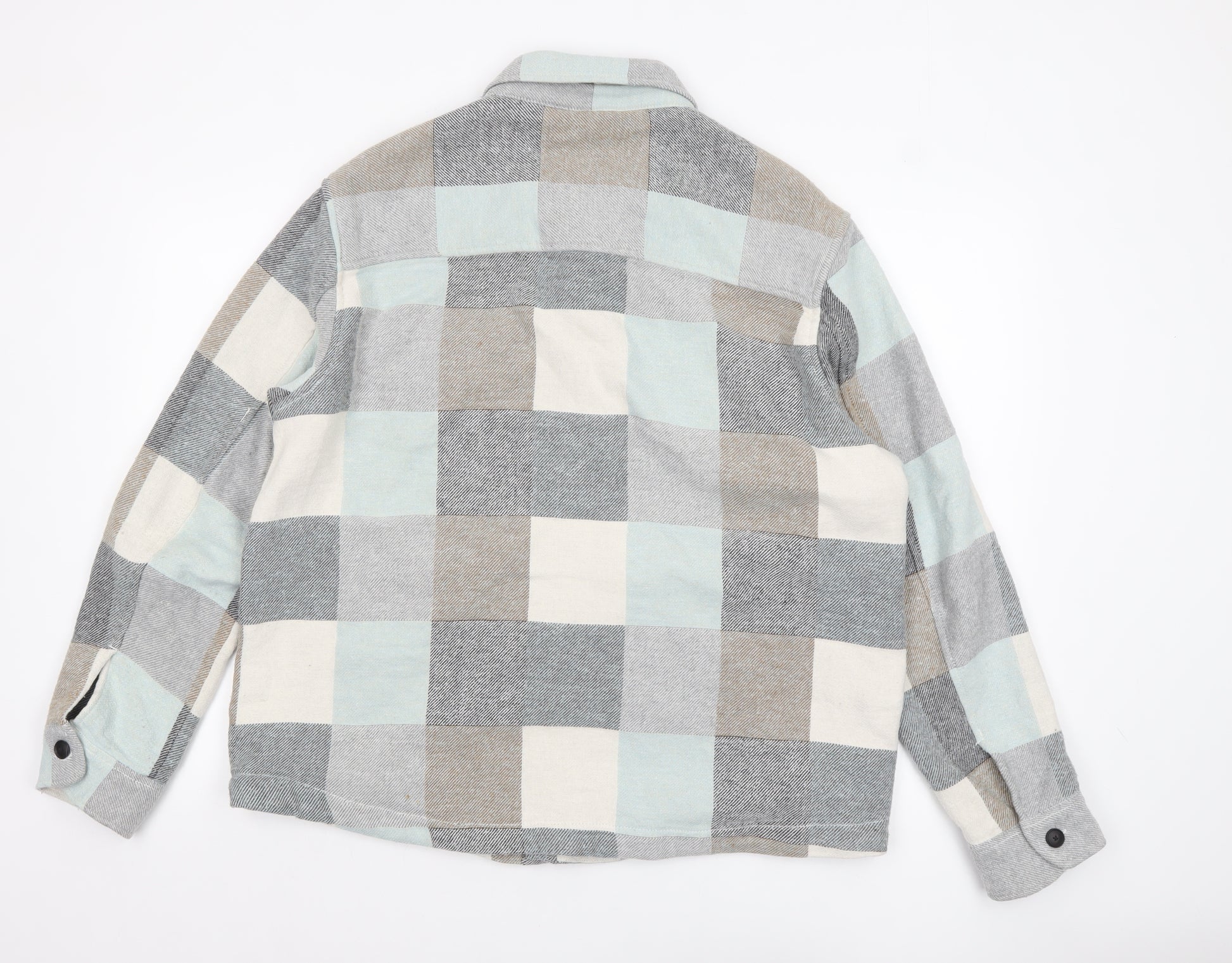 Elevate your off-duty wardrobe with this Zara Women’s multicoloured checked shacket in size XL. Designed with a relaxed fit, this piece merges the casual comfort of a shirt with the structured appeal of a light jacket — perfect for layering through transitional seasons such as autumn and spring. Crafted from a soft cotton blend twill fabric, it offers breathable comfort and a smooth texture that feels great against the skin. The checked pattern in muted shades of grey, beige, cream, and soft blue brings a subtle yet eye-catching charm to your outfit, giving it a timeless and versatile style suitable for everyday wear. Features include a full button-up front closure, collared neckline, twin front button flap pockets, and a comfortable long sleeve with button cuffs, enhancing both function and style. The short jacket length complements jeans, trousers, or skirts for an effortlessly chic, casual look. This Zara shacket is ideal for casual days, travel, or layering on brisk evenings. The overall condition is excellent with only minor signs of gentle use, and it remains clean and ready to wear. A must-have piece for those who appreciate stylish comfort and on-trend simplicity. Pair it with boots or trainers for a modern, laid-back vibe. Whether worn open over a tee or buttoned up for warmth, it’s a dependable and versatile staple for your wardrobe. Perfectly suited to women seeking a relaxed yet stylish outer layer that transitions seamlessly between leisure and lifestyle wear, this Zara checked shacket delivers quality and practicality in equal measure.