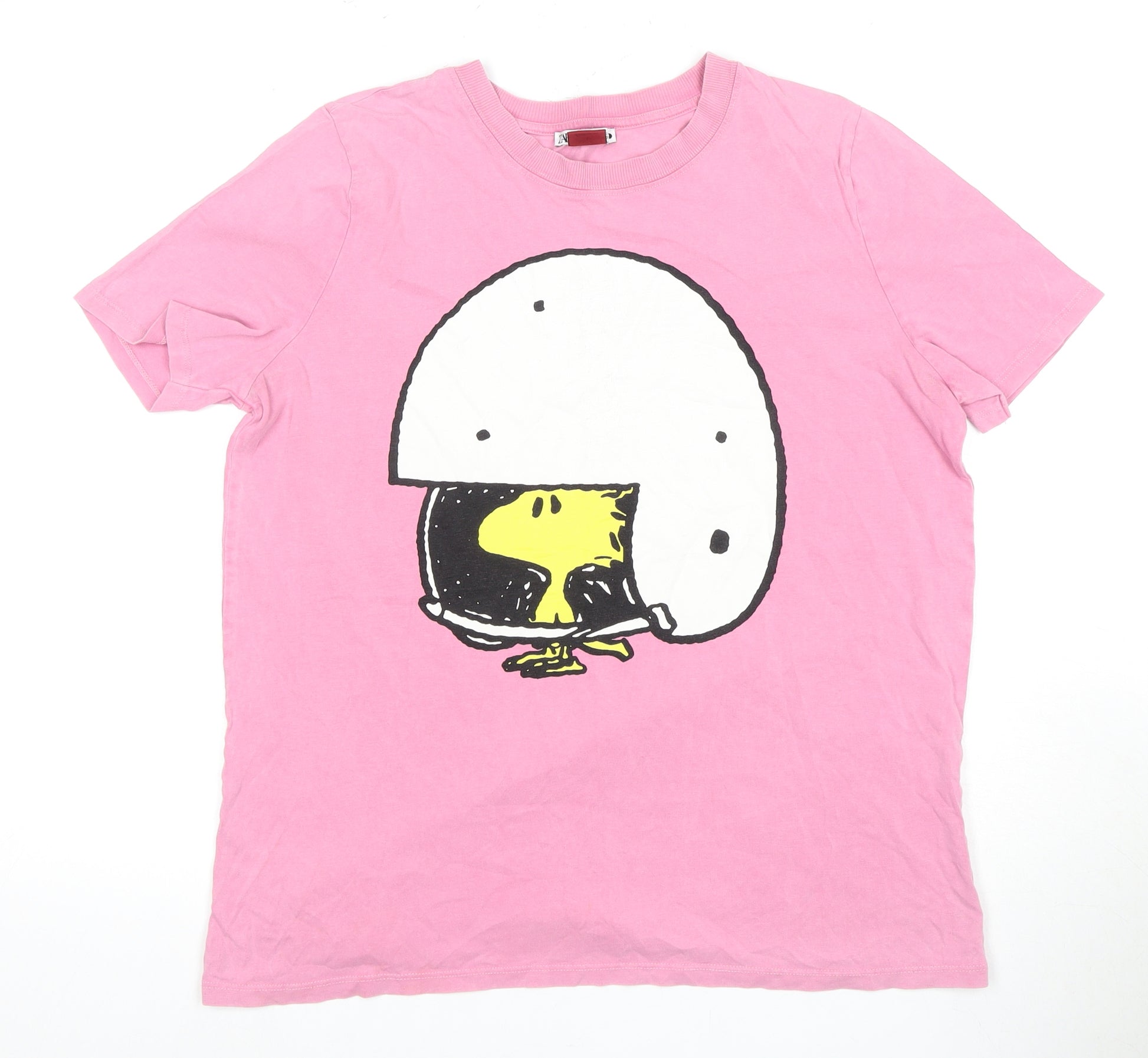 Embrace casual chic with this delightful pink Peanuts T-shirt by Zara, perfect for everyday comfort. Crafted from 100% cotton, the fabric is soft and breathable, making it a wonderful addition to your casual wardrobe. The cheerful pink hue sets the stage for a playful graphic, which showcases a unique design that adds a splash of creativity to your look. The classic crew neck and short sleeves offer a relaxed fit that ensures all-day comfort, making it a versatile piece for outings, errands, or lounging at home. The regular fit complements every body type effortlessly, while the pullover closure allows for easy wearing. This shirt is machine washable, ensuring fuss-free maintenance, and it comes in a size M that accommodates various body shapes perfectly. Enhance your wardrobe with this delightful and playful addition that speaks to your love for comics and animated charm. Ideal for pairing with jeans, skirts, or shorts, this T-shirt invites you to express your personality in a fun and chic way. Don't miss out on this excellent condition find that's sure to bring smiles and style to your everyday routine.