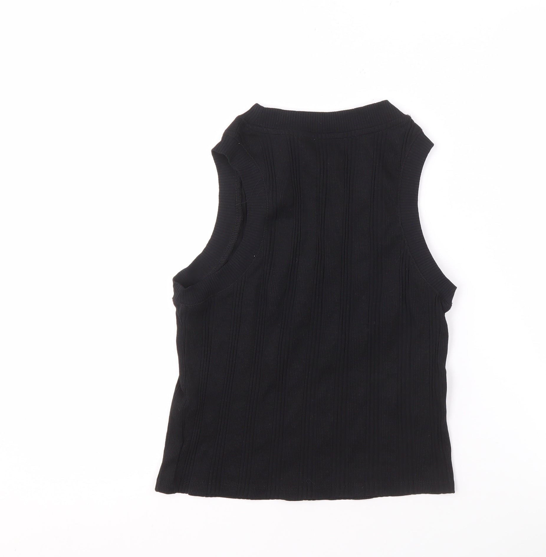 Elevate your casual wardrobe with this classic black tank top from Zara. Designed for women, it features a sleek, sleeveless silhouette that exudes minimalist charm and versatility. Made with a soft knit fabric, this tank combines comfort with style, making it perfect for all seasons. The body is crafted from 95% cotton and 5% elastane, ensuring a snug yet stretchy fit that maintains its shape wear after wear. This basic tank top is machine washable, making it a practical choice for everyday wear. Whether you're dressing up or down, its solid black colour provides a neutral canvas that pairs effortlessly with any outfit. Ideal for casual occasions, this tank offers a regular fit and a crew neckline, lending a laid-back yet polished look. Overall, this Zara tank top is an essential piece for anyone looking to add a touch of sophistication to their casual collection. Available in size M, this piece offers a regular size fit designed for women's comfort and style.