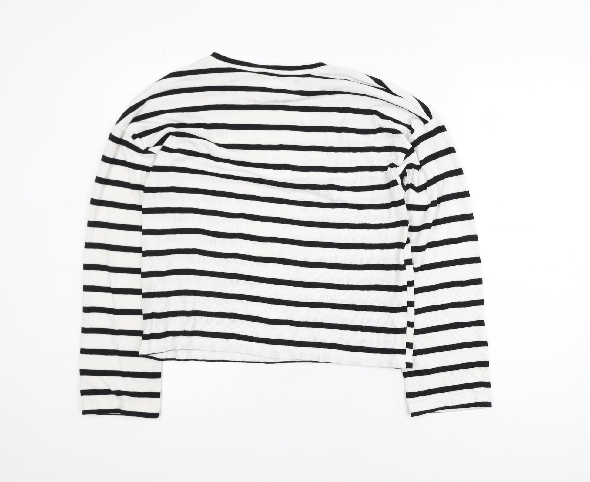 Women’s Black White Striped Long Sleeve Basic T-Shirt Size S