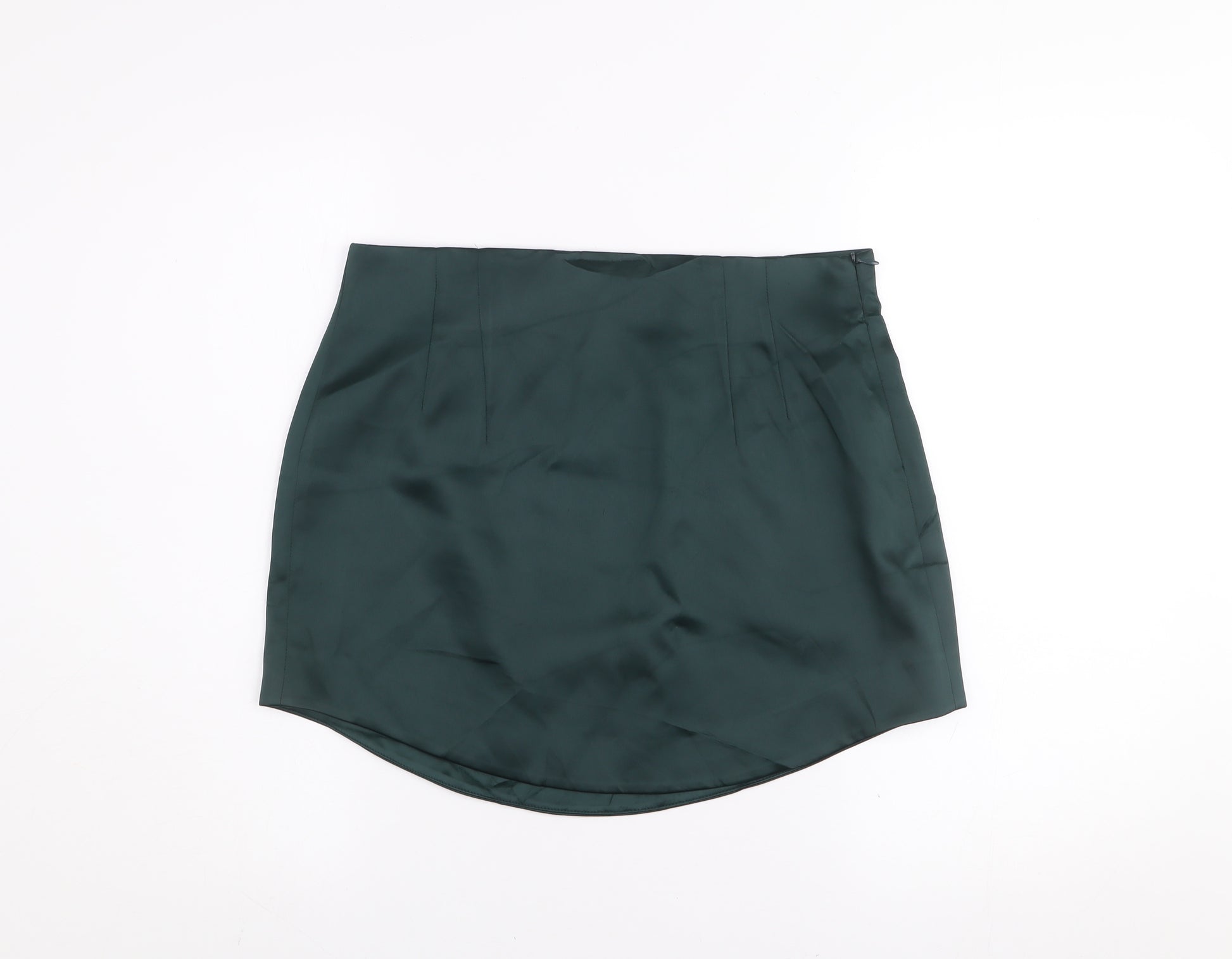 Women’s Green Short Satin Pencil Skirt Size L High Rise