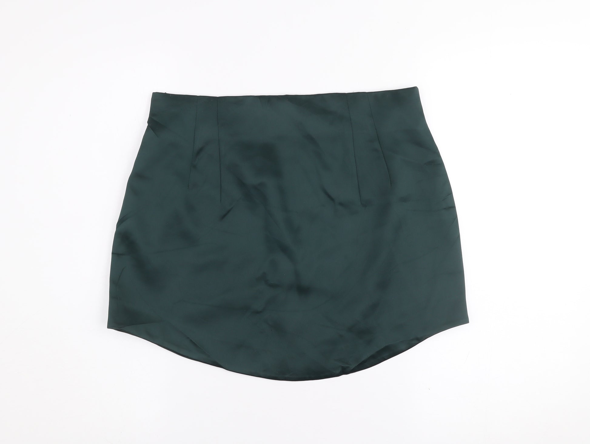 This stunning women’s skirt by Zara offers a refined balance of elegance and confidence, perfect for both day and evening occasions. Crafted from 100% polyester with a luxurious satin finish, it presents a sleek silhouette in a rich, deep green hue that effortlessly elevates your outfit. The short length design lends a contemporary edge, while the pencil cut accentuates your figure with a flattering, streamlined shape. Designed for the modern woman, this Zara skirt provides a touch of understated sophistication suitable for casual outings, smart-casual days, or paired with a dressy blouse for an event. The high-rise waist ensures a comfortable and form-fitting look that defines your shape while maintaining style versatility. Its zip closure secures the fit, and the lightweight fabric makes this piece perfect for spring, summer, and even autumn styling. Whether you pair it with heels for a night out or trainers for a relaxed city look, this skirt adapts seamlessly to your wardrobe needs. Its minimalist, no-pattern finish ensures it coordinates beautifully with both prints and solids. Made in Turkey, the craftsmanship embodies quality and attention to detail, while the soft, smooth texture reflects the high standards of Zara’s tailoring. With machine washable care instructions, maintaining this skirt’s freshness is easy and convenient. This item is brand new with original tags attached, making it an ideal choice for anyone who values pristine condition and exceptional style. An effortless yet polished piece, this Zara skirt will quickly become a go-to favourite in your collection, offering timeless chic appeal for seasons to come.
