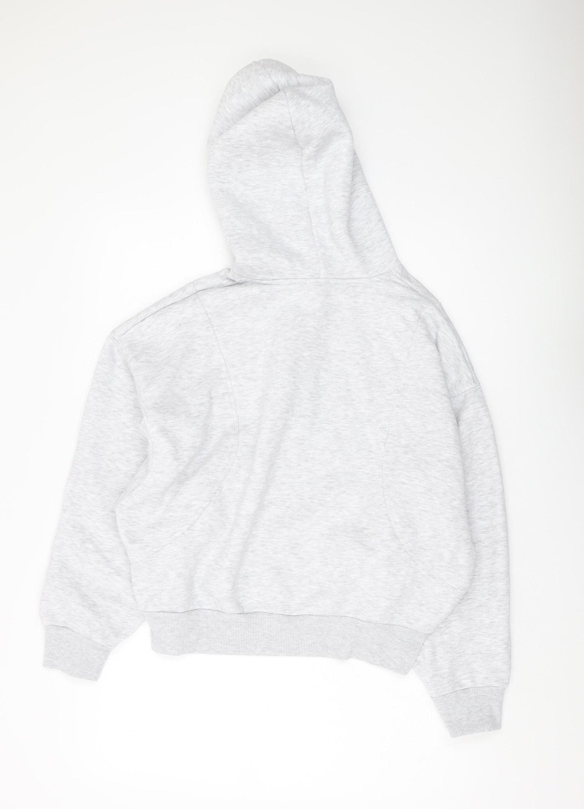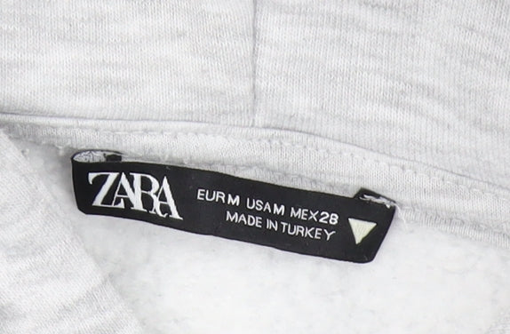 Discover comfort and style with this Zara Women’s Pullover Hoodie in a versatile grey colour. Perfect for casual wear, this medium-sized hoodie offers a relaxed fit catering to all seasons. Crafted from a soft blend of polyester, cotton, and elastane, this hoodie ensures a cozy wear while maintaining breathability and slight stretch for added comfort. The attached hood with a drawstring closure provides additional warmth and protection against the elements. Featuring a prominent ‘NY’ logo accent on the front, it adds a unique urban touch to your wardrobe. The long sleeves offer full coverage, while the ribbed cuffs and hem contribute to its classic style and fit. Whether you're heading out for a casual outing or just lounging at home, this hoodie is an ideal choice. Pair it with jeans or leggings for a complete look. The smooth grey tone makes it easy to mix and match with other colours in your closet. Embrace the mix of comfort and current fashion trends with this piece from Zara.