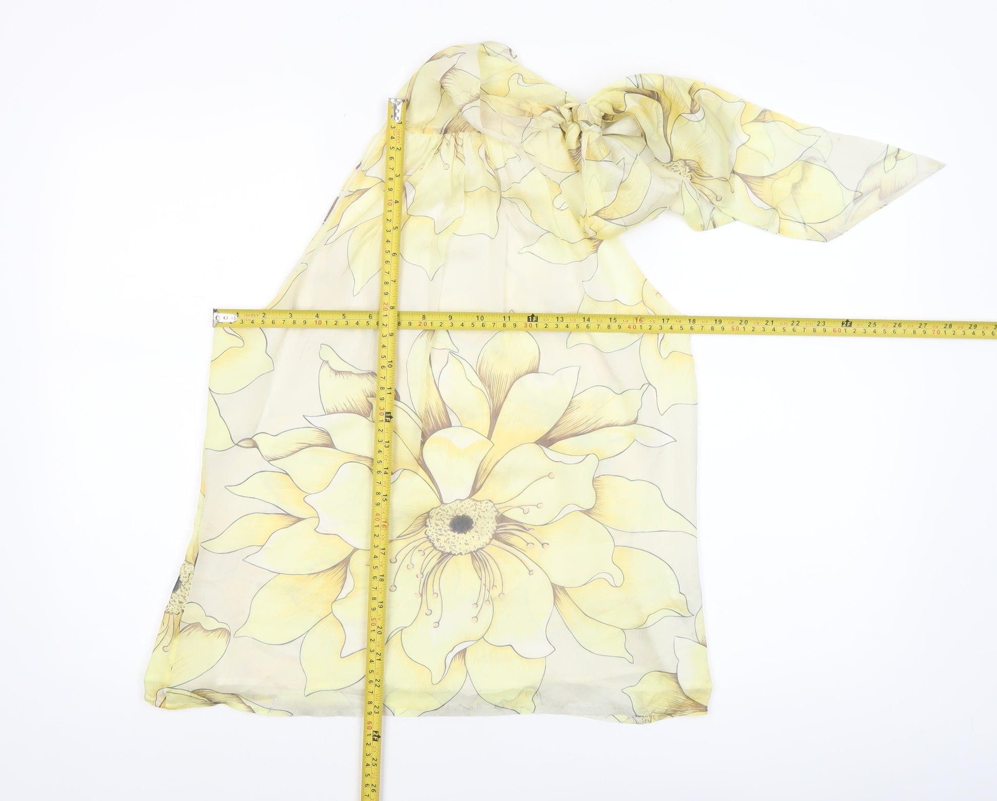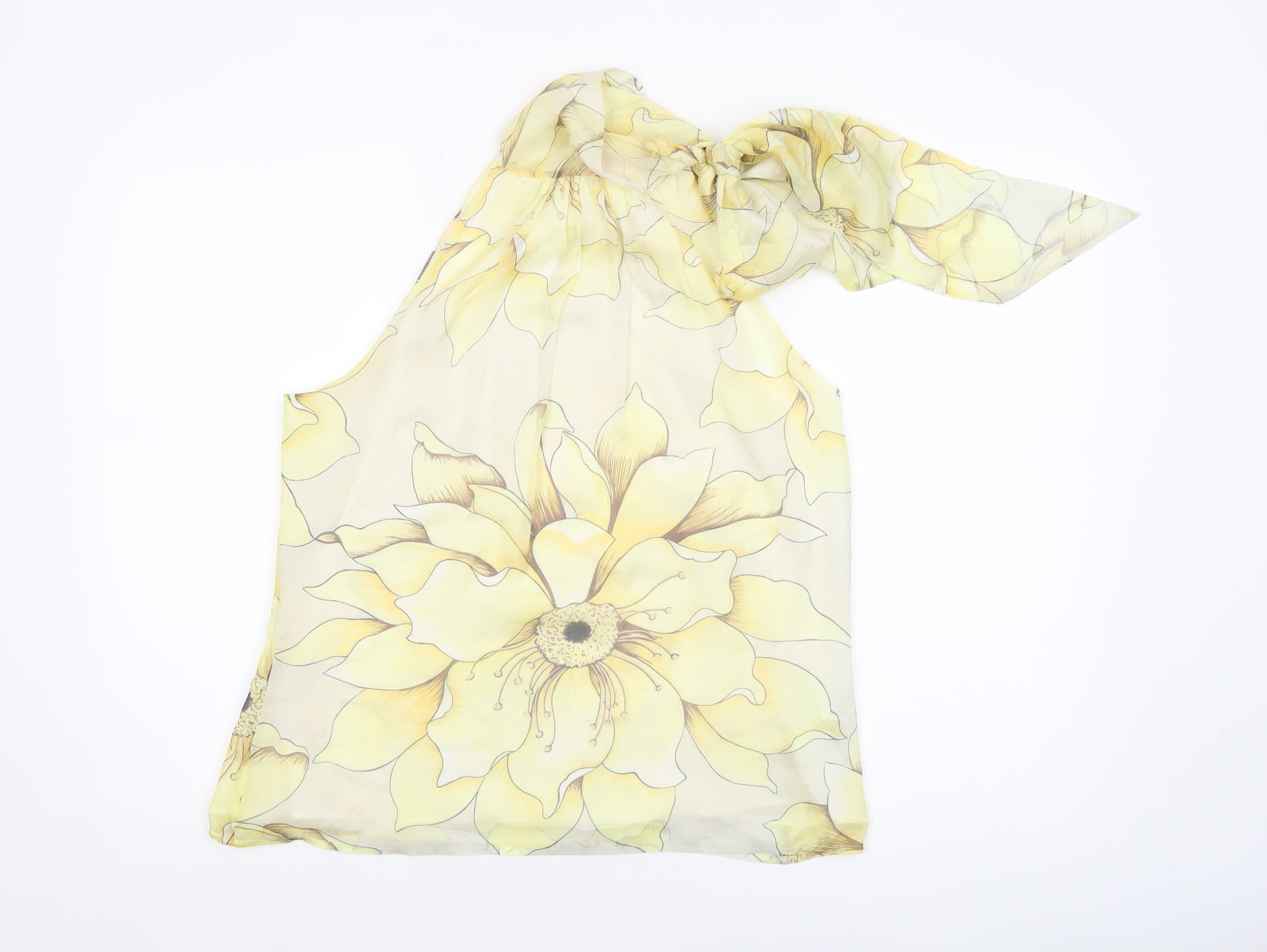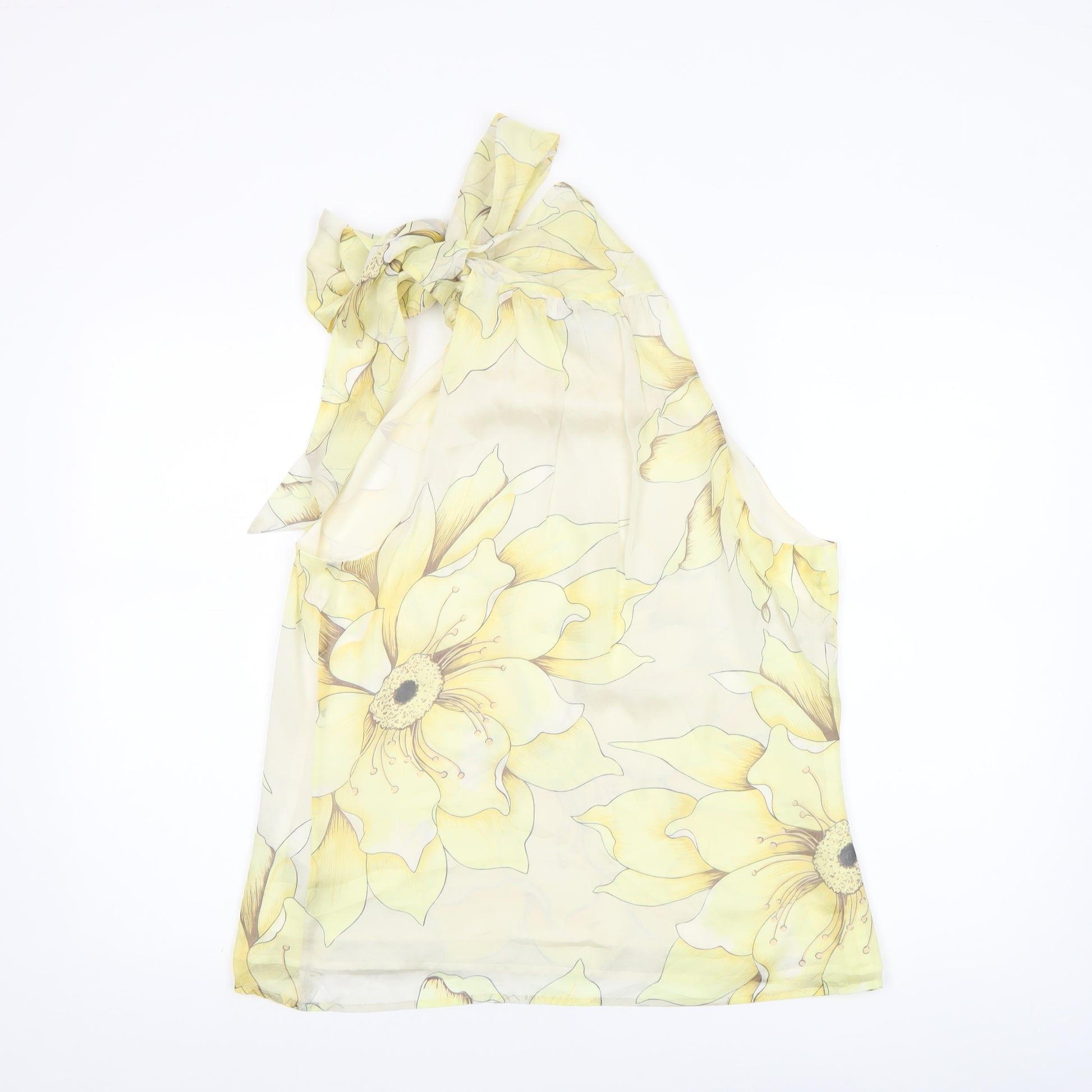 Women Yellow Floral Silk Halter Neck Blouse Size 12