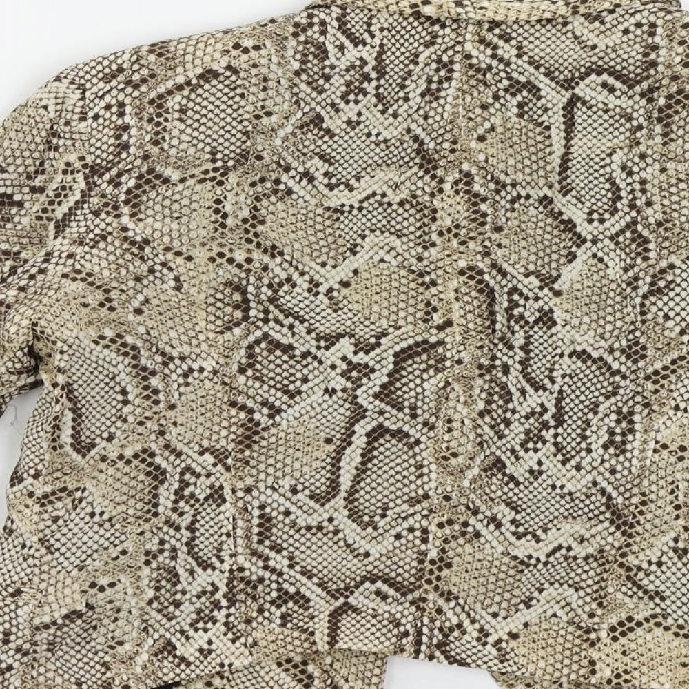 Womens Beige Animal Print Jacket Blazer Size S - Open