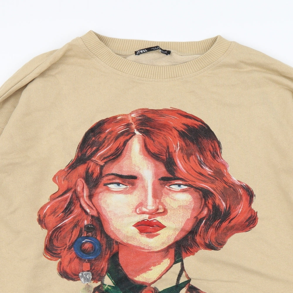 Womens Beige Cotton Pullover Sweatshirt Size S Pullover